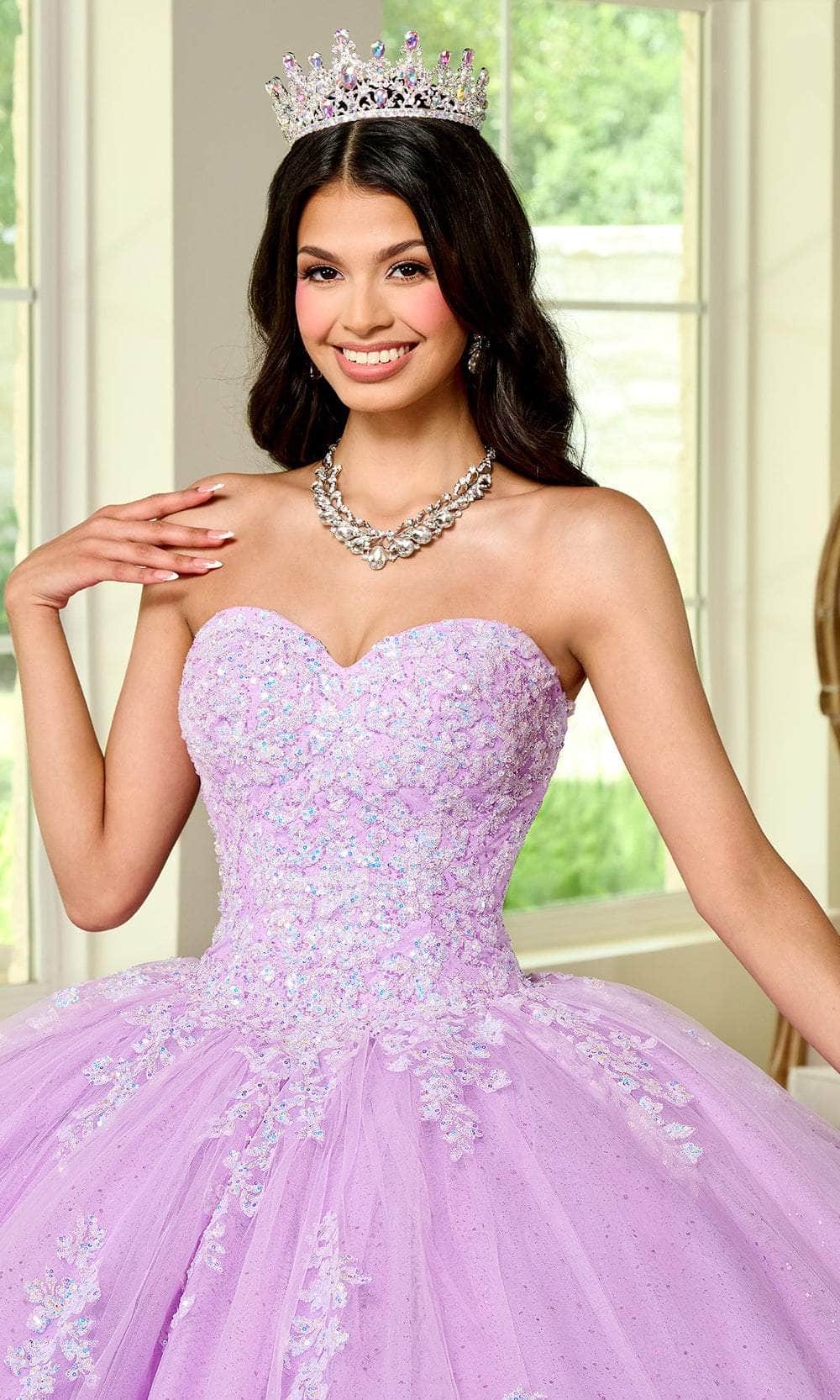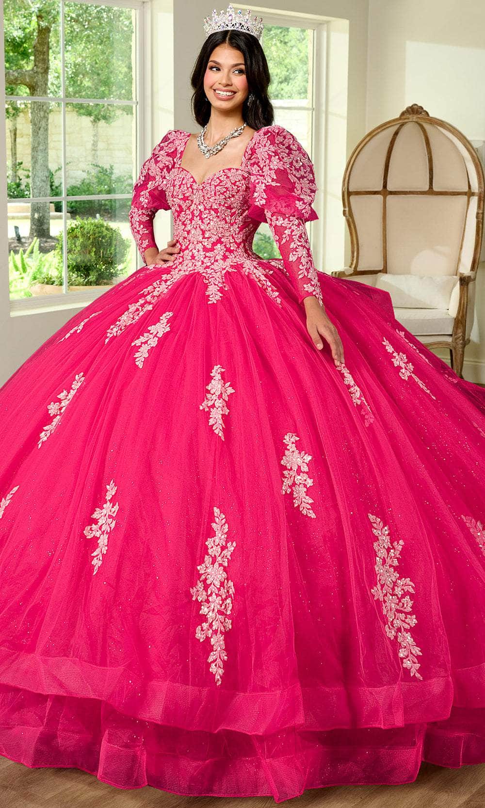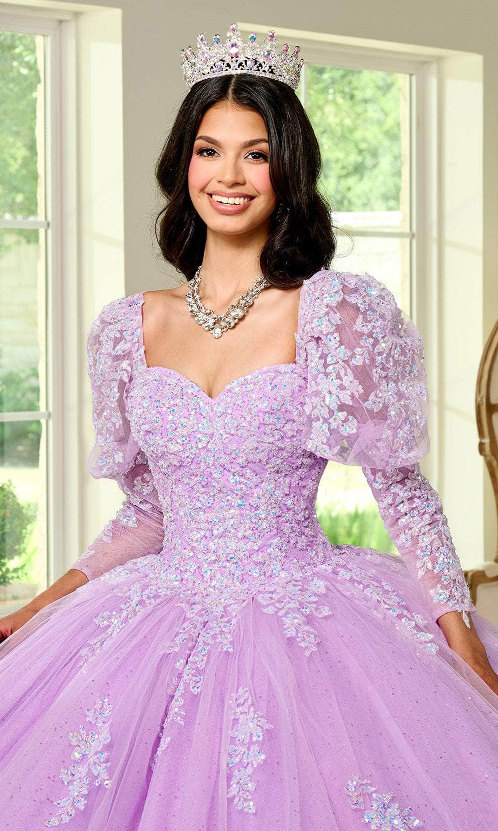 Step into elegance with Rachel Allan RQ1131, a stunningly beautiful gown crafted from delicate glitter tulle adorned with whimsical applique and beading. The detachable long sleeves, featuring bubble shoulder detail for added drama, provide versatility. The lace-up back ensures a customized fit, while the horsehair trim detail adds a special touch of elegance. This gorgeous Rachel Allan RQ1131 guarantees you will feel like royalty, capturing the essence of regal beauty for a truly memorable and enchanting occasion. Models are wearing Bright Pink, Lilac Iridescent, Mint, and Iridescent colors.