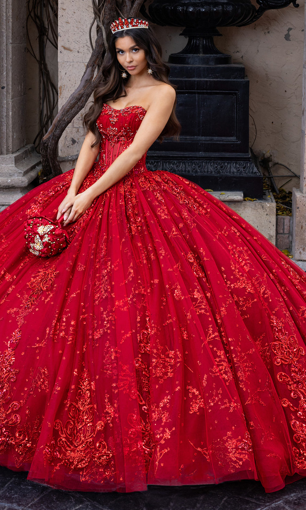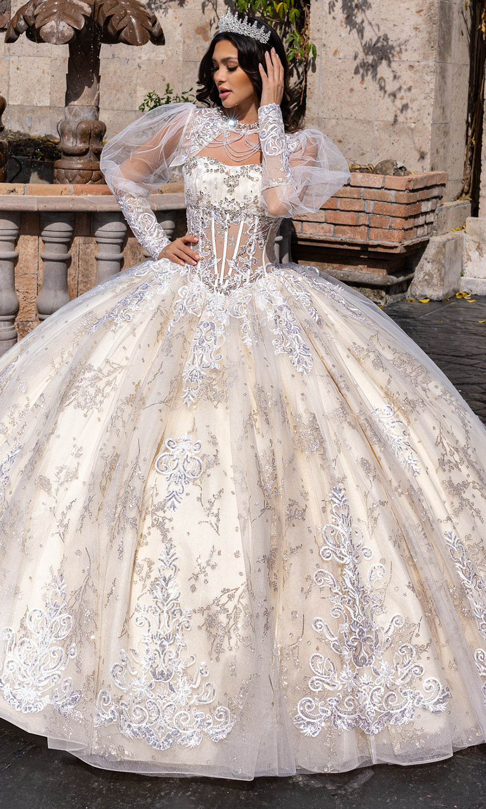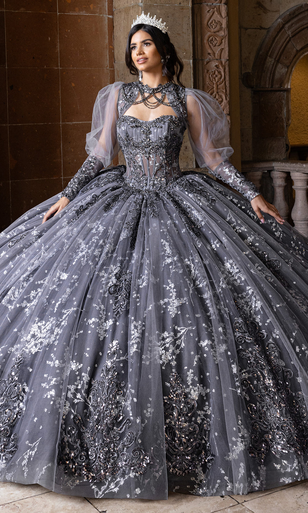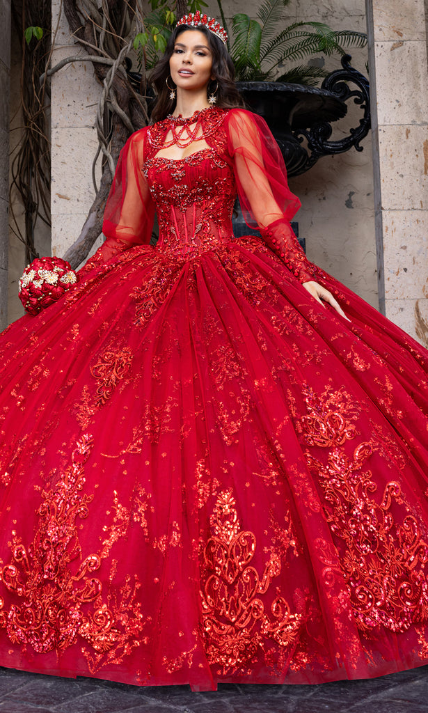 From its luxurious silhouette to its finely detailed embroidery, Rachel Allan RQ1172 is a gown that redefines grandeur for the modern quinceanera. Designed with a sheer corset bodice and strapless sweetheart neckline, it balances timeless elegance with dramatic volume. Detachable sheer sleeves lend a fairytale quality, while the glitter-accented embroidery and beadwork flows organically across the full ballgown skirt. Rachel Allan RQ1172 is the embodiment of majesty and romance, ideal for the young woman stepping into her spotlight moment. Models are wearing Deep Red, Gunmetal Silver, and Ivory Champagne colors.