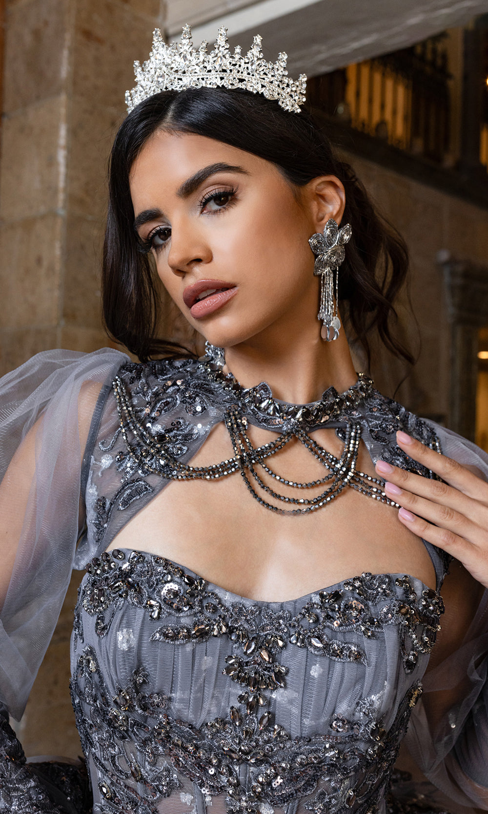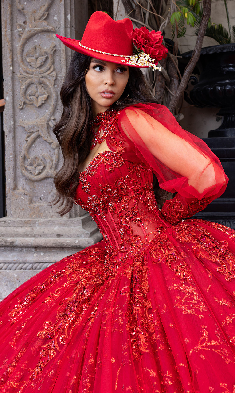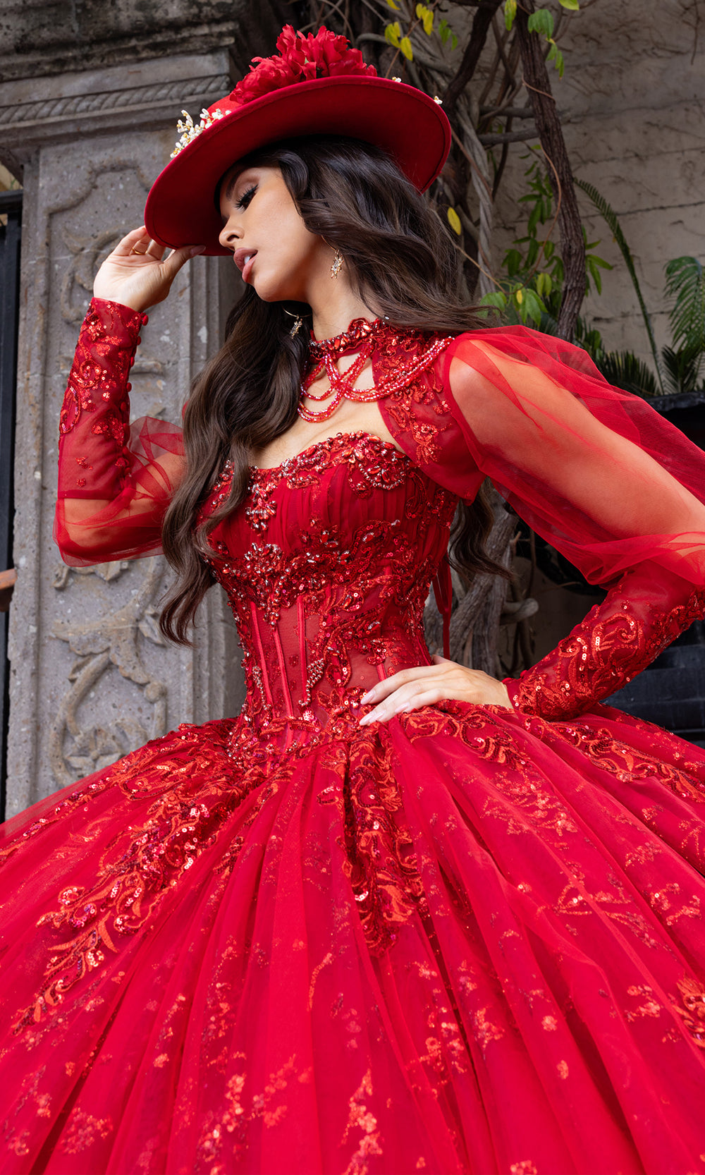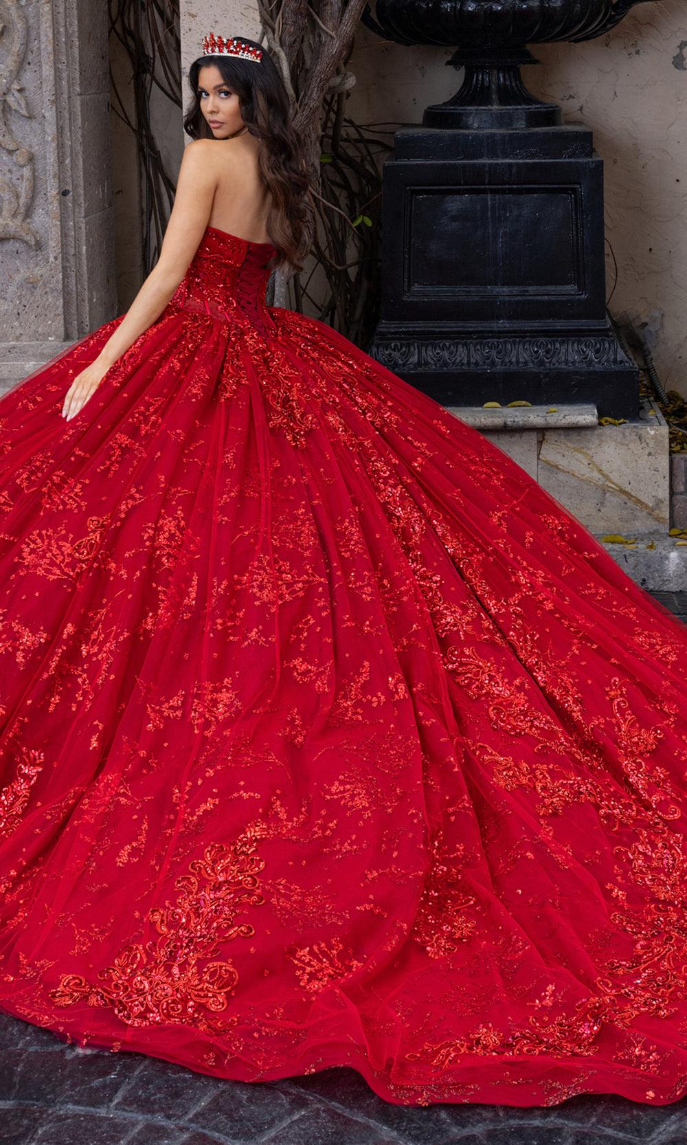 From its luxurious silhouette to its finely detailed embroidery, Rachel Allan RQ1172 is a gown that redefines grandeur for the modern quinceanera. Designed with a sheer corset bodice and strapless sweetheart neckline, it balances timeless elegance with dramatic volume. Detachable sheer sleeves lend a fairytale quality, while the glitter-accented embroidery and beadwork flows organically across the full ballgown skirt. Rachel Allan RQ1172 is the embodiment of majesty and romance, ideal for the young woman stepping into her spotlight moment. Models are wearing Deep Red, Gunmetal Silver, and Ivory Champagne colors.