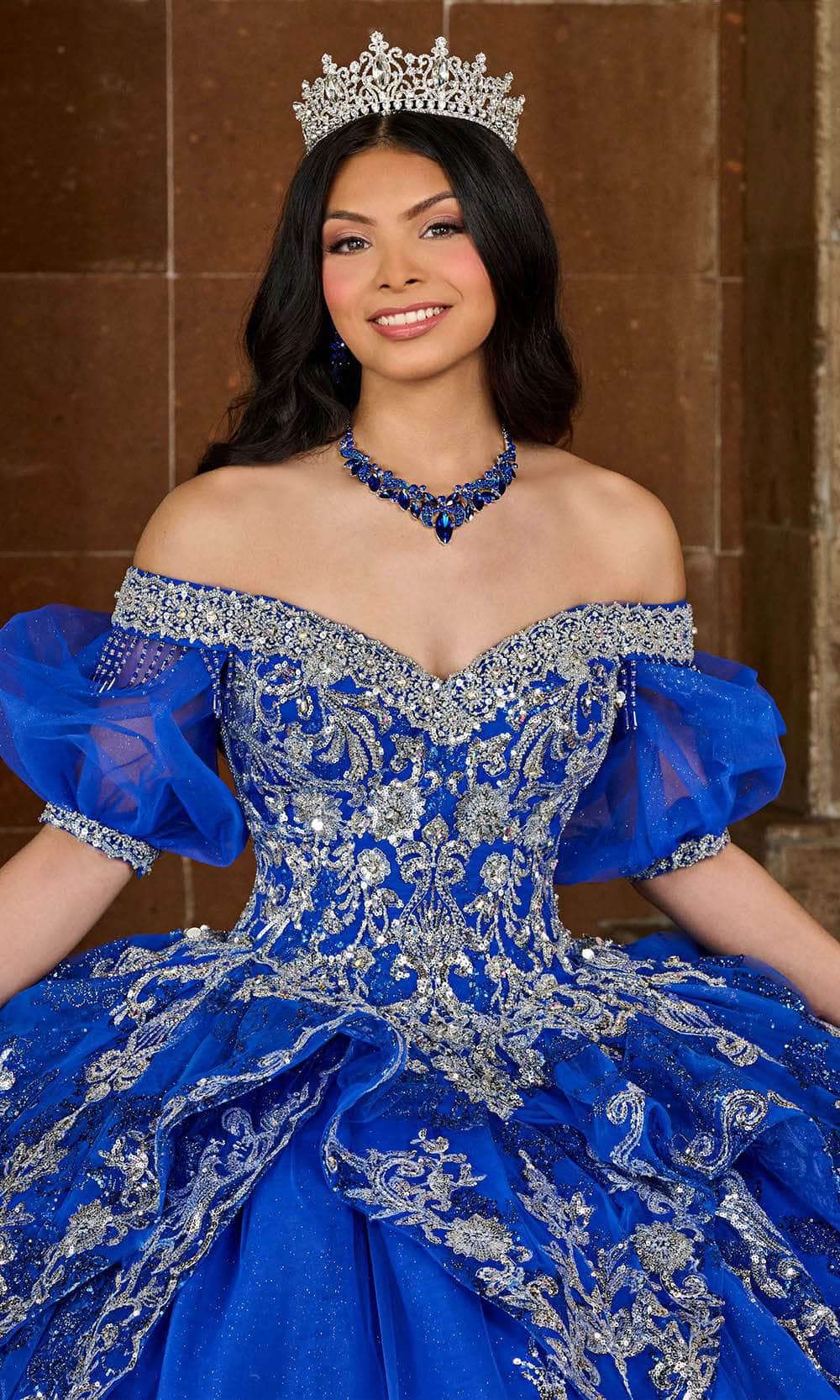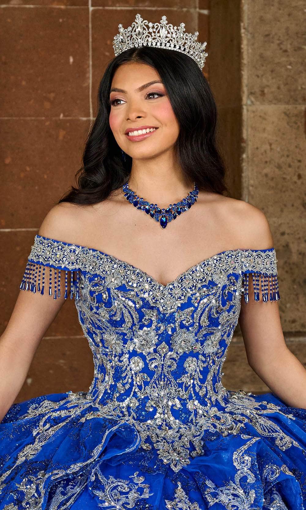 Become a vision of tailored perfection with Rachel Allan RQ3128, an enchanting tulle ballgown designed to leave a lasting impression. This romantic ballgown exudes sophistication, featuring a hand-beaded off-the-shoulder neckline with applique and fringed detailing for a regal look. The detachable tulle sleeves offer a subtle vintage touch, while the lace-up back ensures the ultimate fit. As you gracefully move, the glitter tulle lightly sparkles in the light, creating a dreamy sight. With this Rachel Allan RQ3128, you are destined to amaze at your big event. Models are wearing Royal and Sage colors.