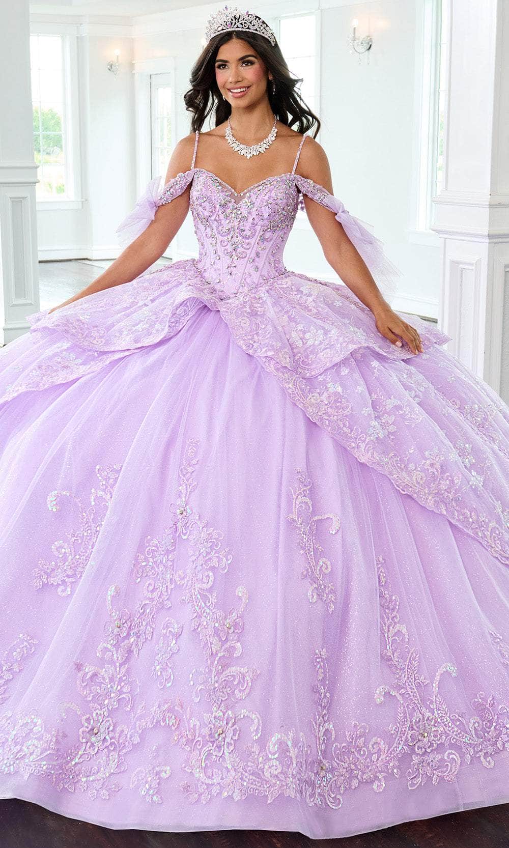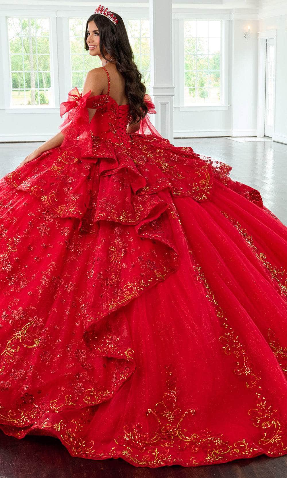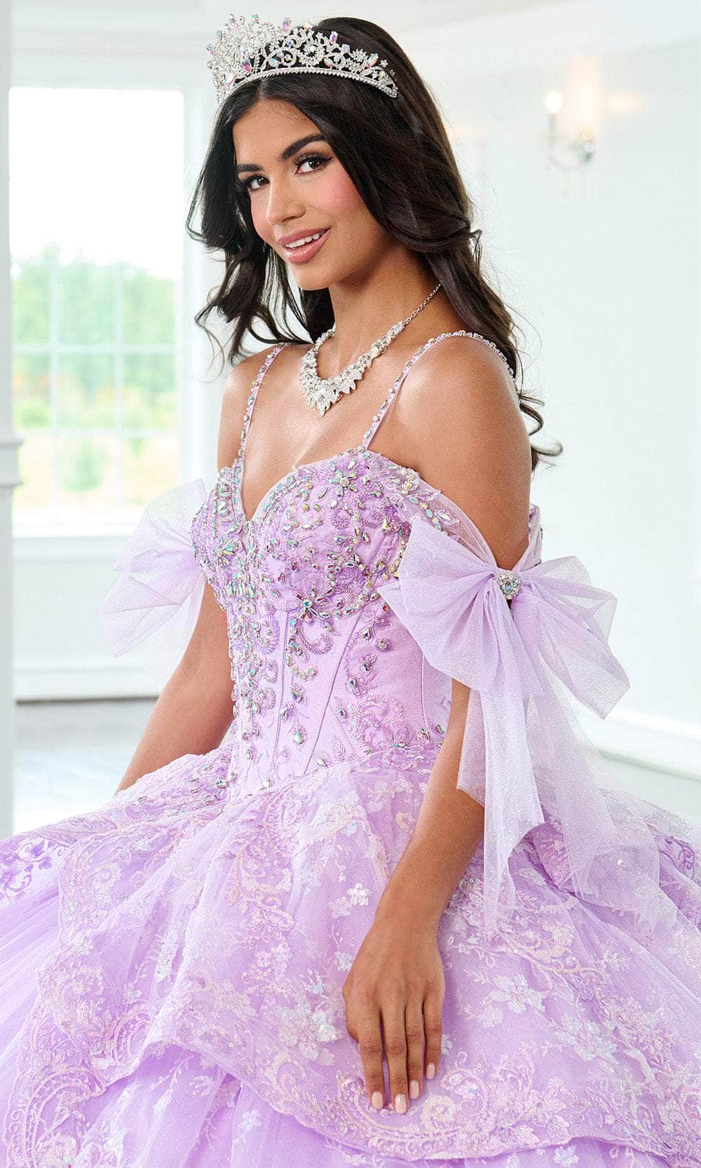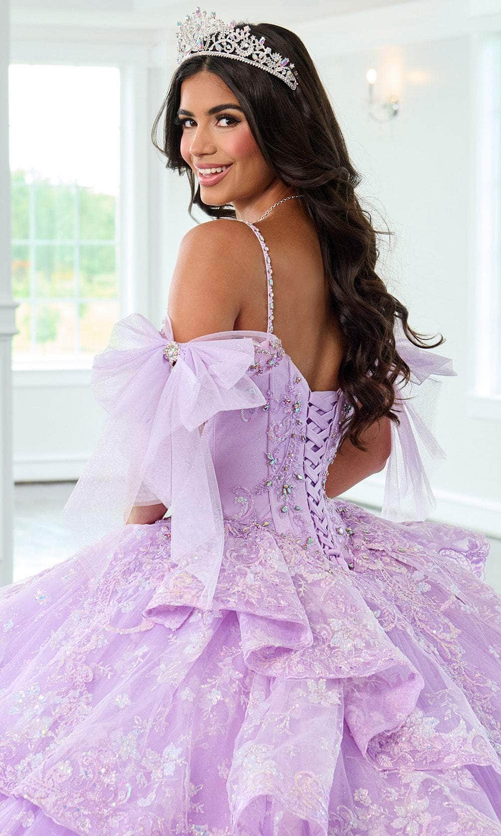 Step into a world of elegance with the Rachel Allan RQ3147, a show-stopping ballgown designed for the ultimate grand entrance. Crafted from luxurious glitter tulle, this gown features lace applique, sequin and beading that add a regal touch. The sweetheart neckline and fitted bodice provide a romantic silhouette, while the voluminous ballgown skirt ensures a majestic flow. The bow-tied off shoulder sleeves and spaghetti straps offer a charming detail, complementing the exquisite embellishments. Elevate your evening look with the Rachel Allan RQ3147, a gown that defines sophistication and grandeur. Models are wearing Red, and Lilac colors.