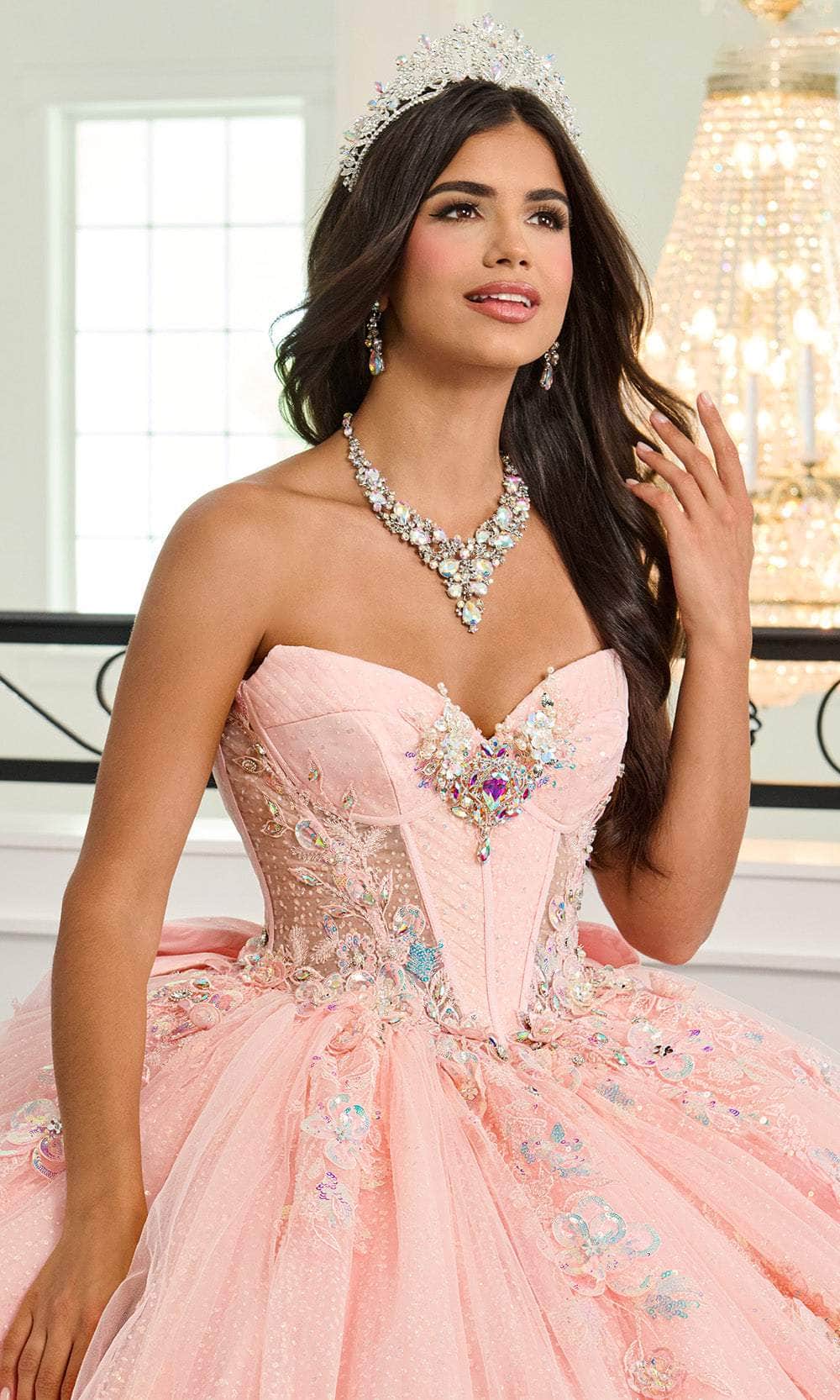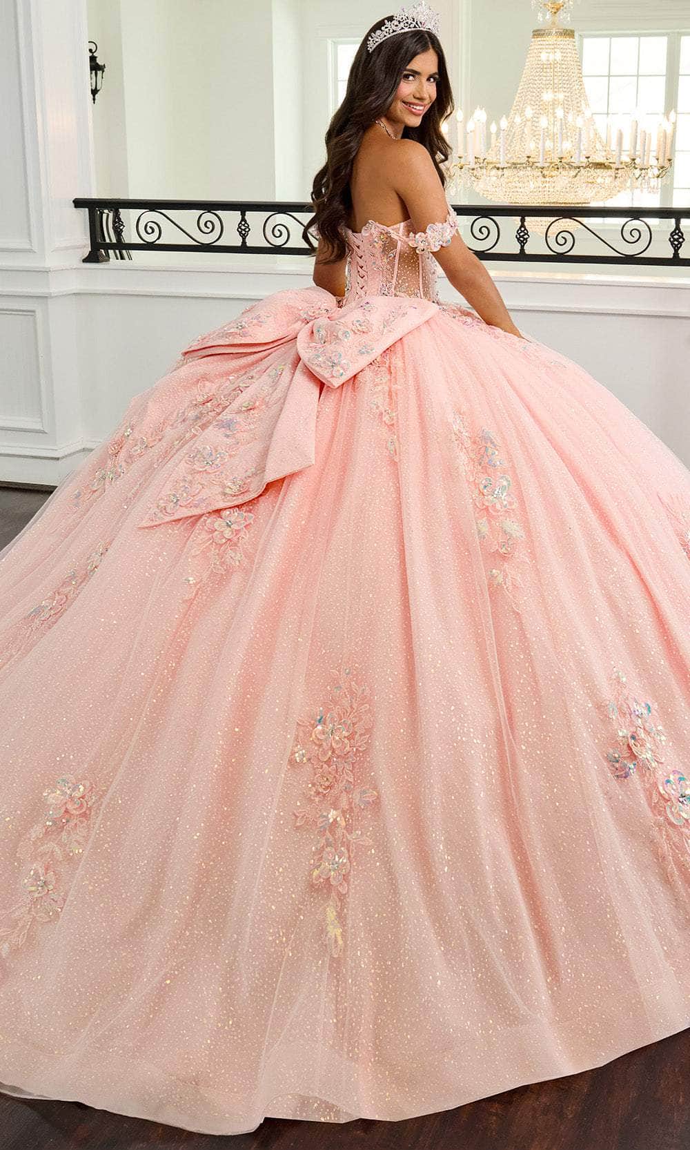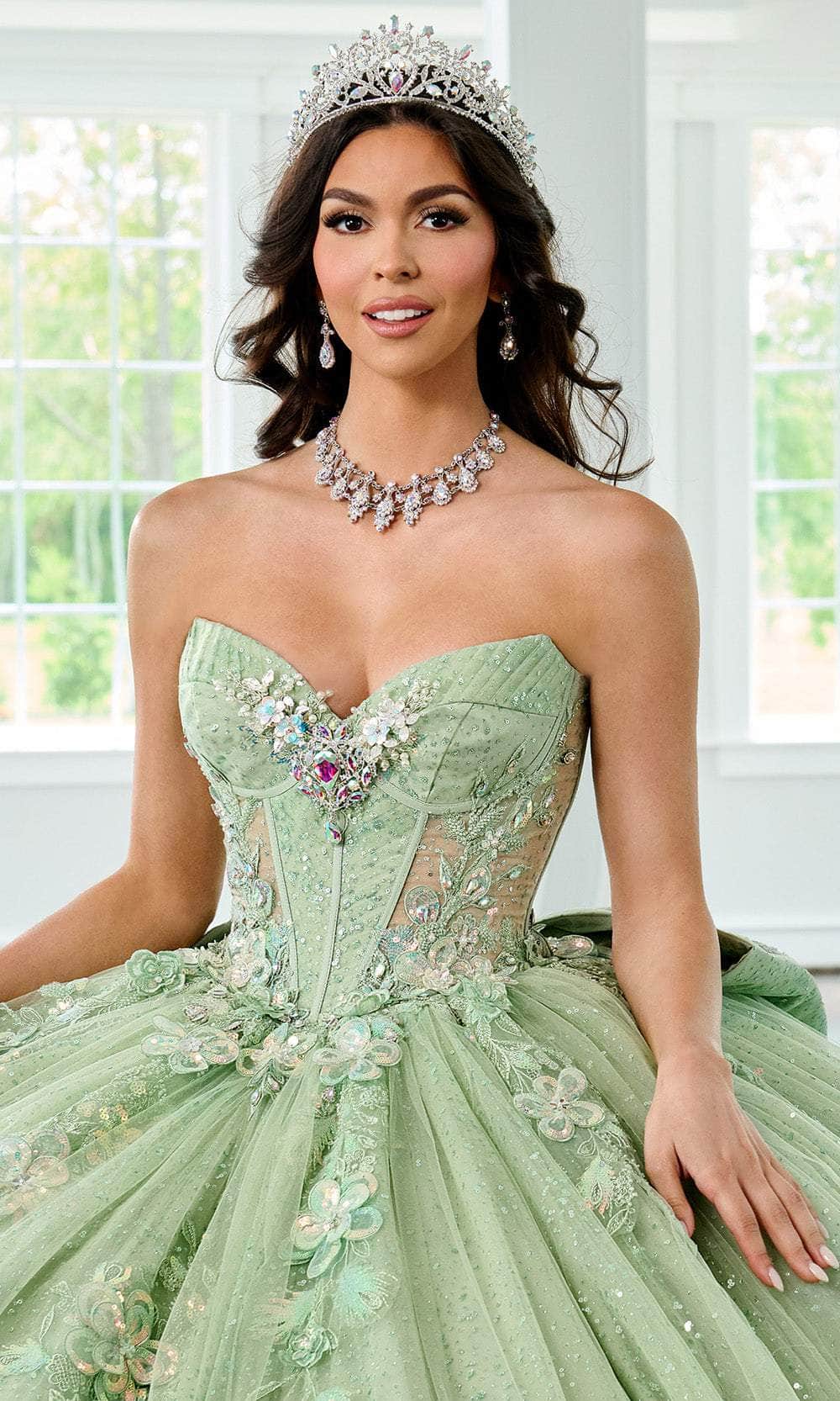 Step into the limelight with the magnificent Rachel Allan RQ3154 ballgown, designed for a fairy-tale-worthy moment. The sweetheart neckline and detachable off-the-shoulder sleeves bring a touch of romance, while the beaded, embroidery and 3D floral appliques gracefully adorns the glittering tulle fabric. A detachable bow adds a striking statement to the back, and the removable bodice liner allows for a customized fit. Whether styled for regal sophistication or a modern touch, this Rachel Allan RQ3154 masterpiece is a breathtaking choice for a truly grand event. Models are wearing Blush, and Sage colors.