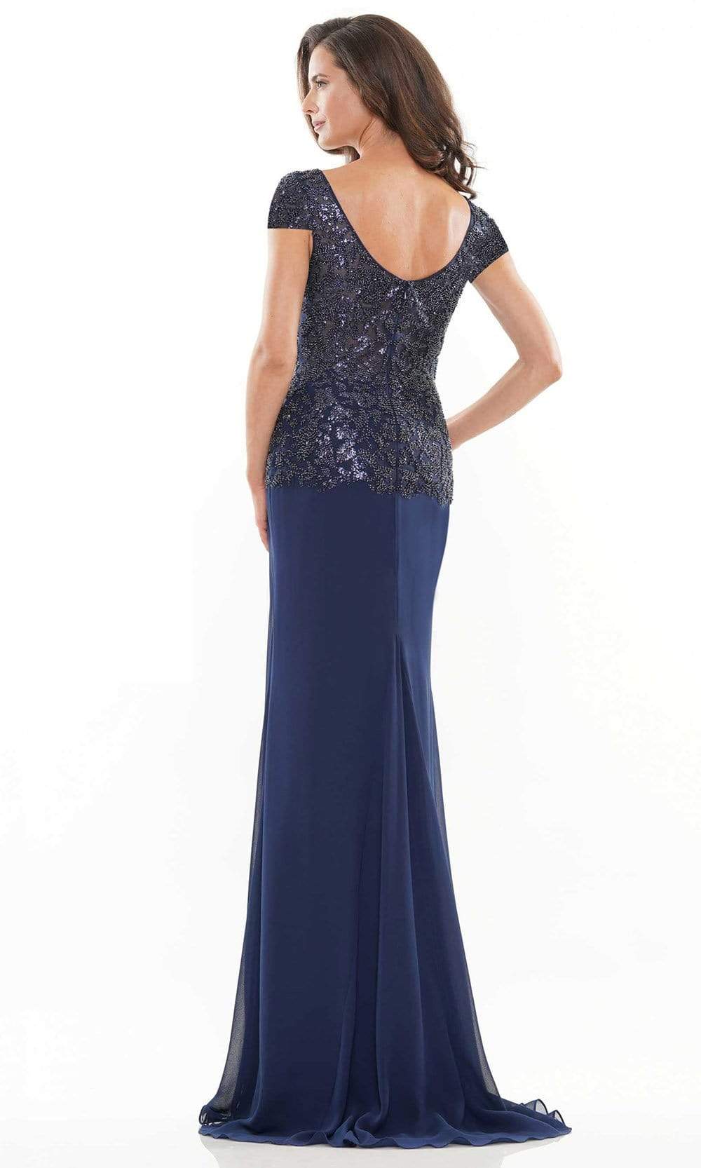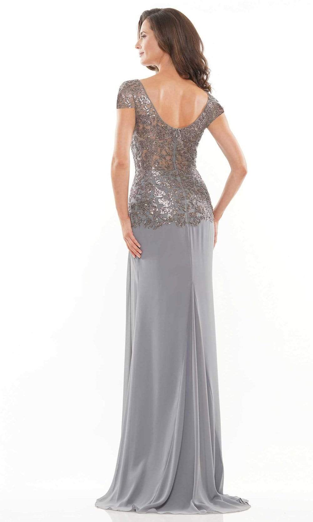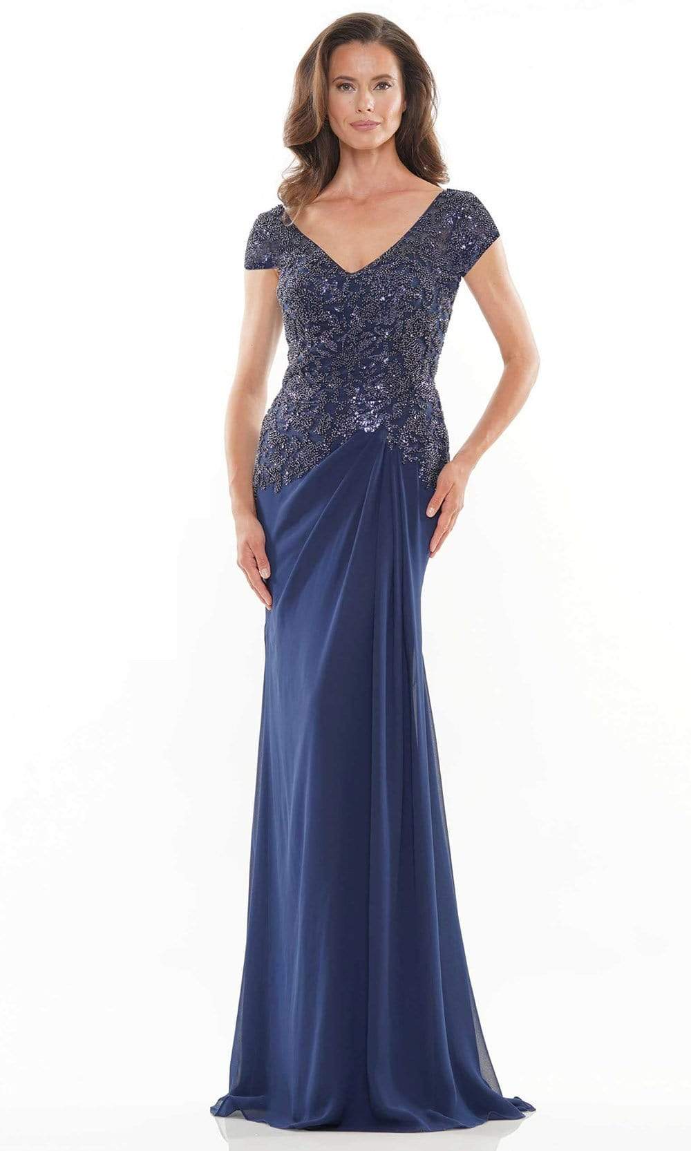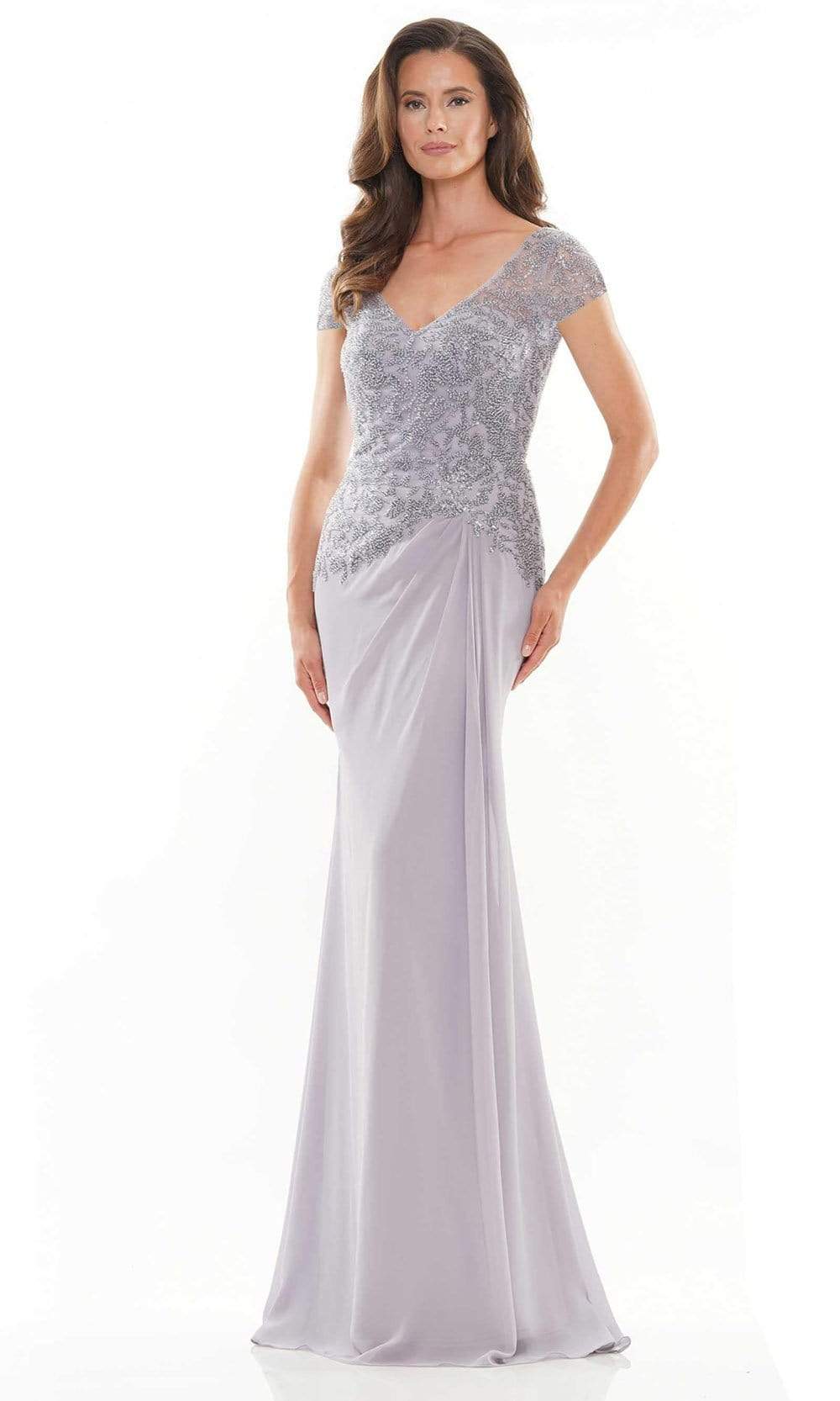Steal the show and shine in this Rina Di Montella RD2743 creation. Tantalizingly textured beadwork and lace details, this piece shows deep v-neckline bodice with a scoop back. Nipped at the waist and dropped into a ruche-rendering, the skirt flows into a floor length style and train. Lavish in the style of this Rina Di Montella masterpiece.