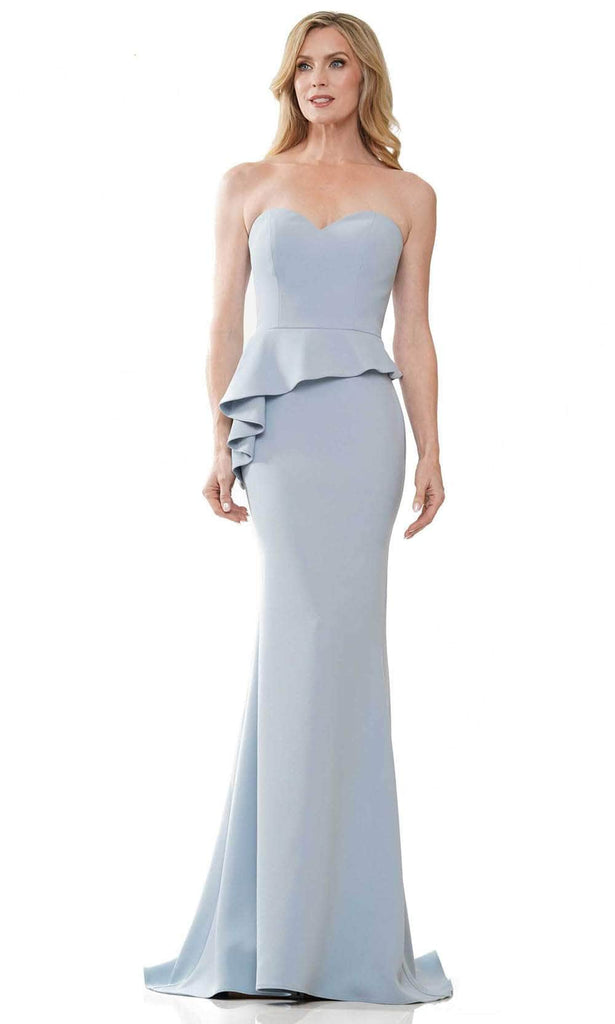 Let the crowd notice your immaculate presence in this Rina Di Montella RD2948 creation. Styled with tailoring details on an immaculate stretch crepe silhouette, this gown showcases a fitted silhouette that accentuates the feminine form. This gown parades a strapless sweetheart neckline and a midrise backline with a concealed zipper closure. An asymmetrical peplum enhances the sophistication of this graceful evening dress, which concludes with a mermaid silhouette and a sweeping train, making a statement of timeless elegance. A matching bolero comes with this ensemble. Adorn yourself in an utterly feminine style as you make your presence known in this Rina Di Montella RD2948 masterpiece. Models are wearing the Dusty Blue, Royal, Silver, Teal, Dusty Rose, Black, and Navy colors.