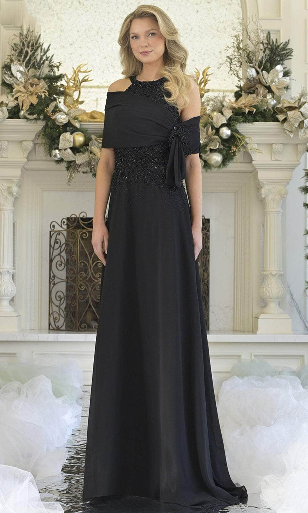 Radiate confidence and sophistication in the Rina Di Montella RD3304 evening gown. This captivating design features a sleeveless halter neckline that elegantly showcases the shoulders, with intricate beading adding depth and shimmer across the bodice. A matching shawl offers graceful coverage, while the flowing long A-line skirt ensures effortless movement. Ideal for formal events or black-tie affairs, this gown blends elegance and glamour with refined craftsmanship. Make an unforgettable entrance in the stunning RD3304 by Rina Di Montella. Models are wearing Black, Rose Gold, and Victorian Lc colors.