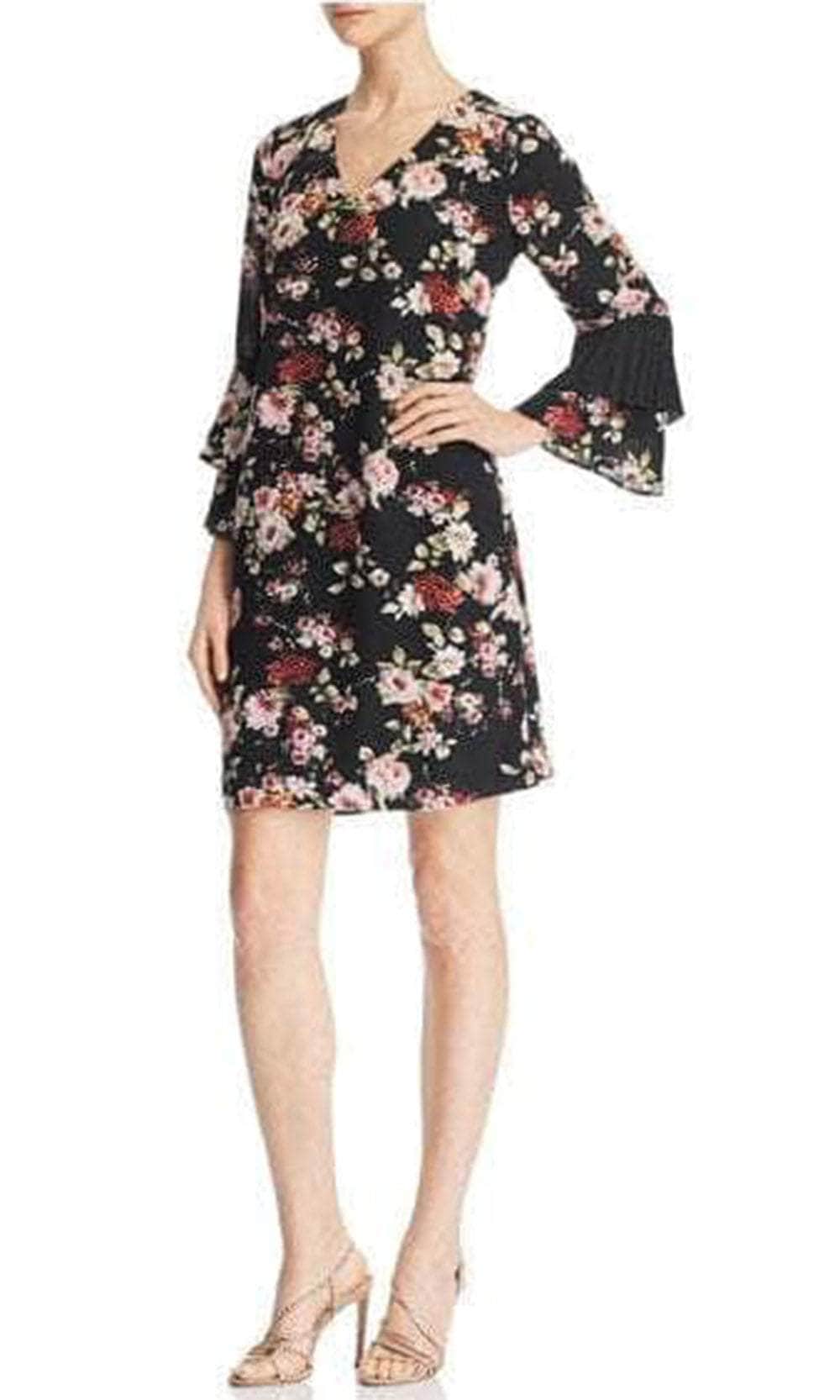 Make yourself into a vision of loveliness in this spectacular dress by Sam Edelman 22R565. Fashions a V neckline and flutter long sleeves with a fitted bodice designed with floral print. The full back features a center zipper closure and the skirt shows a sheath silhouette down to its mid-thigh length. Be the ultimate belle of the party in this gorgeous creation from Sam Edelman. Couture Candy is committed to provide the very best when it comes to dresses for every occasion, and we are delighted to have Sam Edelman on our side to aid us in delivering exquisite dresses for various occasions that are sure to make heads turn. Model is wearing the Black/Multi color.