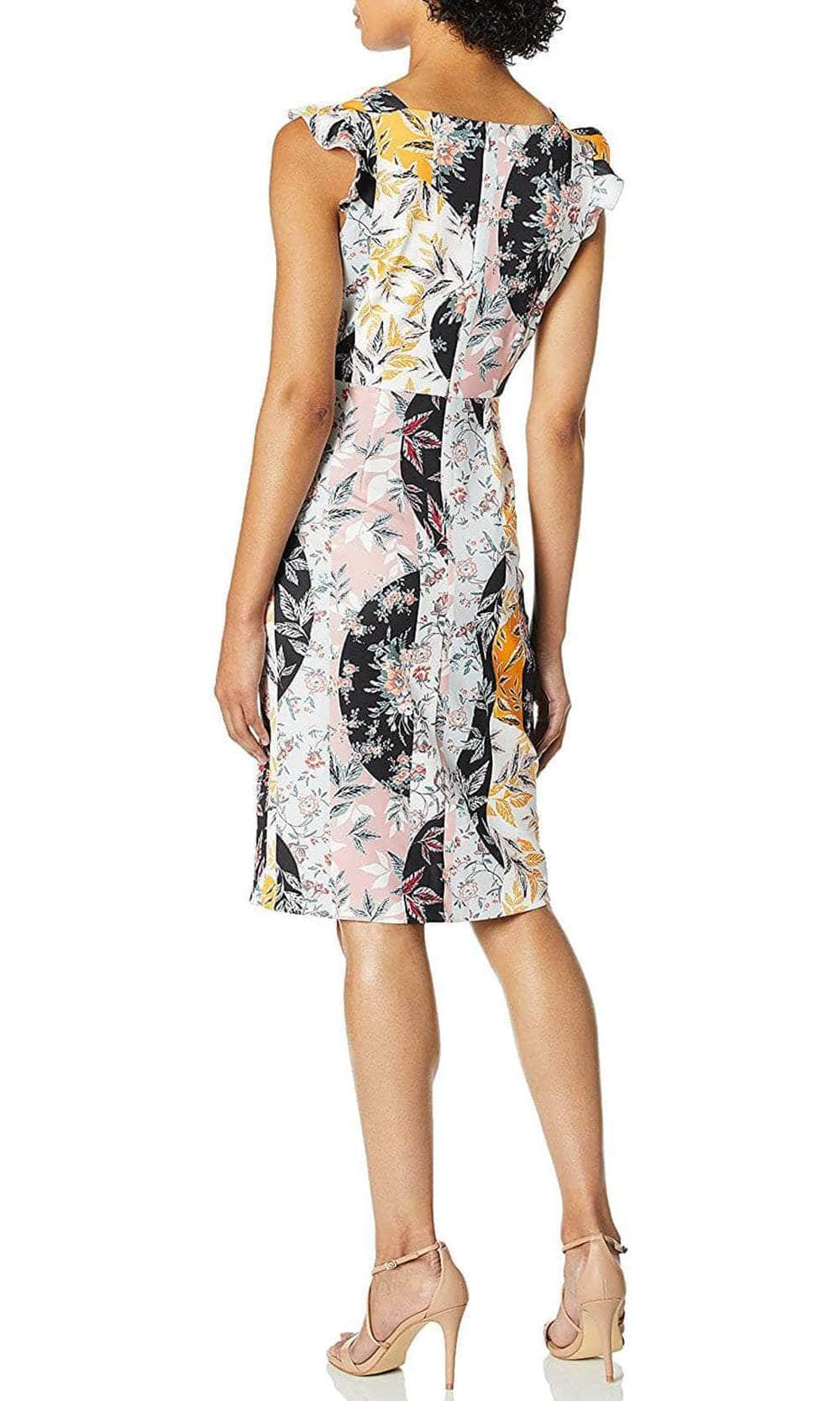 Make it a moment to shine in this gorgeous ensemble by Sam Edelman 78U754-SE. Contoured with princess seams in a vibrant printed fabric, this dress features a square neckline framed in a sleeveless fitted bodice with ruffle details. It has full back secured by a zipper closure and finishes in a short-length hemline. Exude a timeless appeal in this casual dress by Sam Edelman masterpiece. Couture Candy is committed to provide the very best when it comes to dresses for every occasion, and we are delighted to have Sam Edelman on our side to aid us in delivering exquisite dresses f or various occasions that are sure to make heads turn. Model is wearing Ivory Multi color.