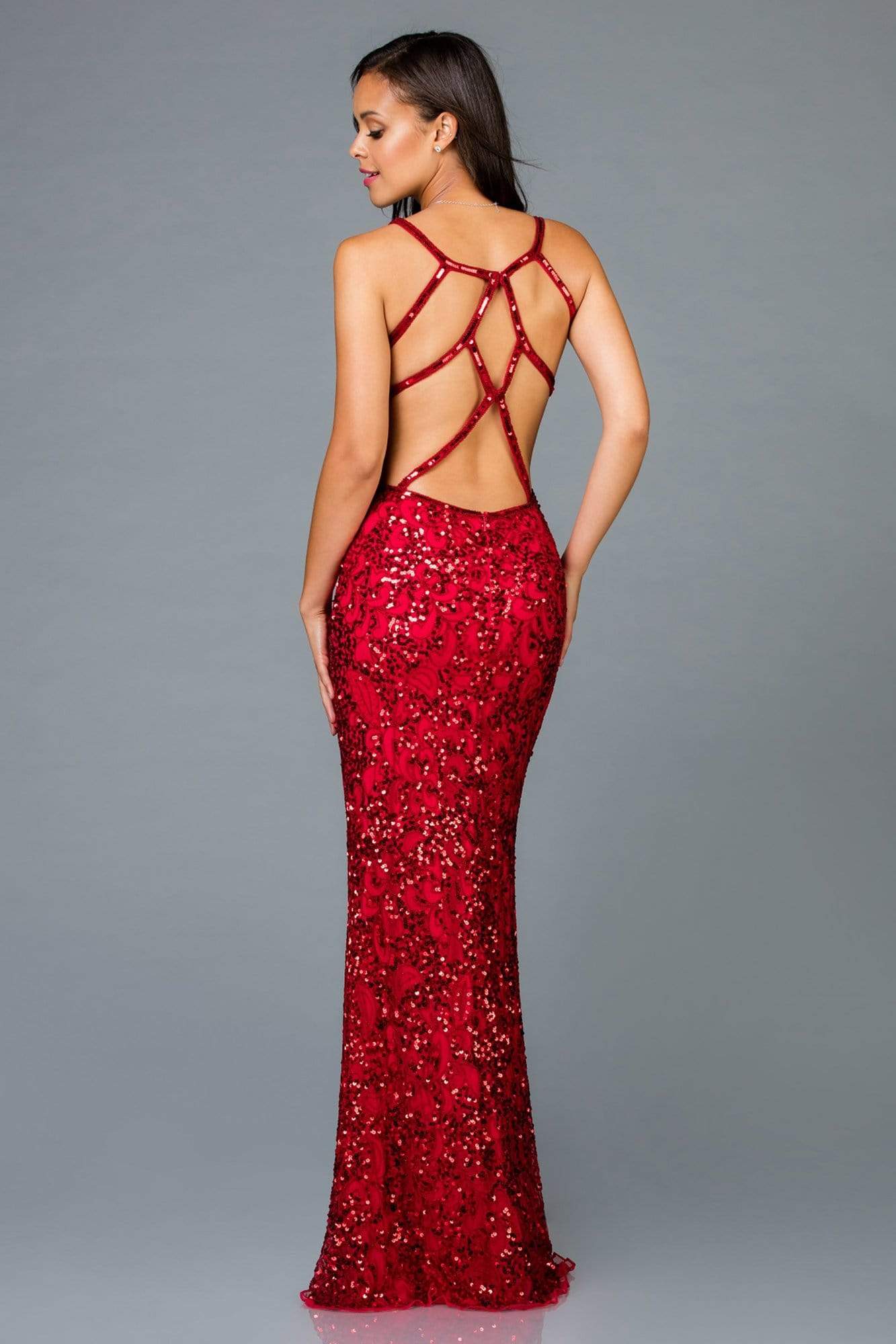 Be ready to fascinate everyone in this captivating dress by SCALA 48932. This long sequined dress flatters your figure in a sleeveless, plunging V-neckline. The fitted bodice perfectly highlights your curves and allures with sexy back cutout. The dress presents a full length sheath skirt with a high leg slit. Mesmerize the crowd as you walk in this dazzling SCALA dress.