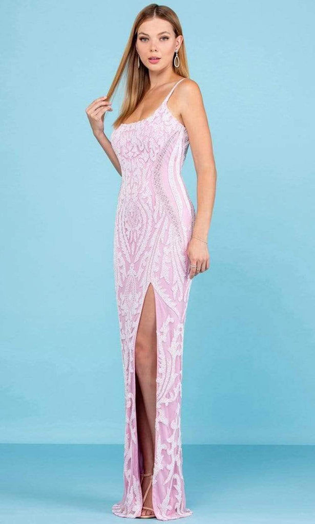 Sparkle in beauty wearing this Scala 60263 creation. This allover beaded embellished gown flaunts a sleeveless, scoop neckline and mid-open back supported with spaghetti straps. The fitted bodice is secured by zipper closure while the skirt flows into a full-length sheath silhouette with a front side slit to perfectly elongate your sexy leg. Be ready to mesmerize the night in this Scala masterpiece.