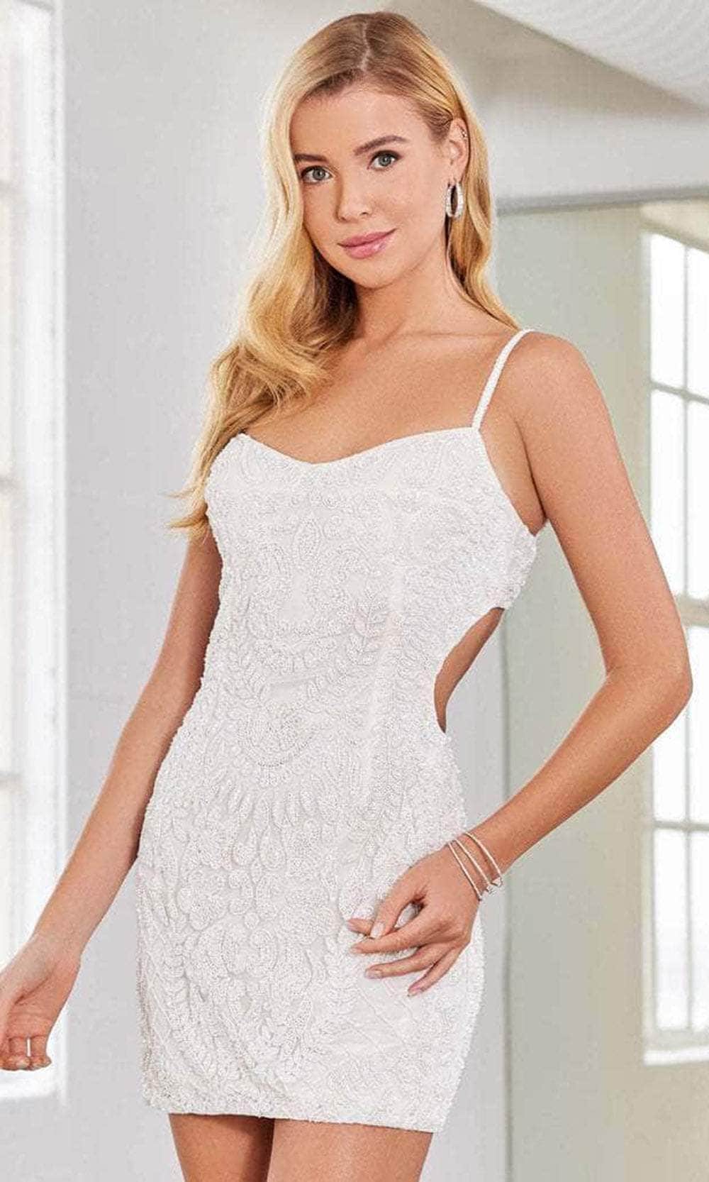 This stunning invention by SCALA 60282 will make you look good out on any occasion. The whole dress is designed in striking sequins as the fitted bodice features a classic scoop neckline. Beaded thin straps are used to hold this masterpiece together and appear a sexier back as it features a lace-up style and is elegantly reinforced by a back zipper closure. The sheath skirt features a hemline that falls just above the knee. Wear this spectacular SCALA masterpiece to steal the show. Models are wearing black/Silver, Ivory/Blush, and dolphin/Pearl colors.