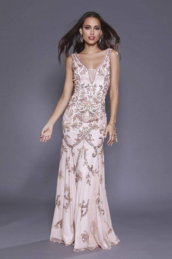 From day to night, you will surely look gorgeous in a supreme dress from Shail K 12139. The unique halter style leads to a v-neckline with a sheer inset. Swirling sequins add a rich appeal to the entire silhouette. Shimmering accents and embroidery bedeck the shirred fluted skirt to a full length. This Shail K creation is perfect for a girl who wants the standout style and flawless fit.