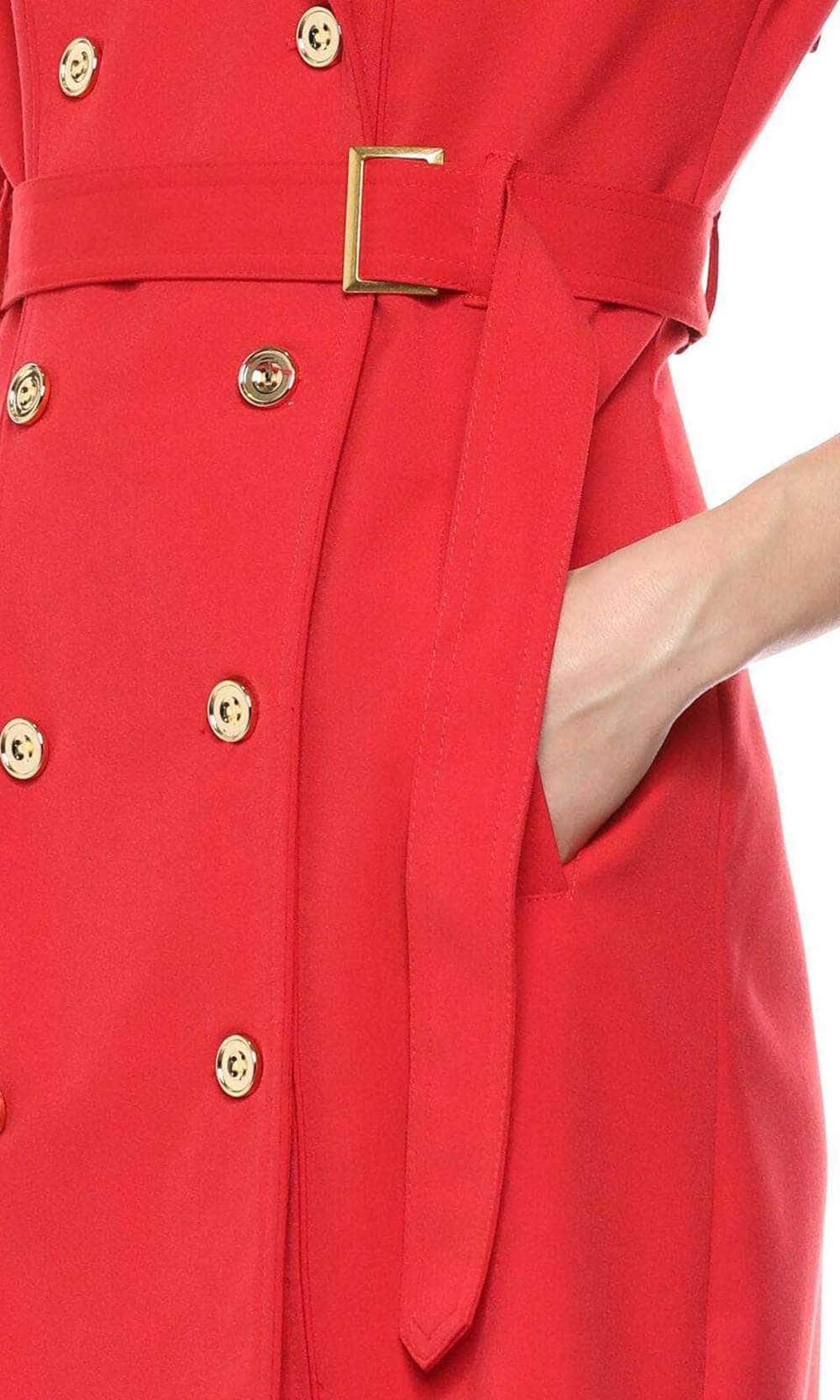Glow with unparalleled elegance in this chic Sharagano 7W9F196241 creation. Exceptionally tailored in to form a double breasted bodice, this dress is charmed with a v-neckline crafted with notched collars. Accented buttons grace the bodice along with a strap that ties along the waist. Defined with fold-accented quarter sleeves and a seam sculpted back, this piece completes with an A-line skirt that ends at a mini-hemline. Dress to impress with this stylishly designed Sharagano masterpiece. Couture Candy is committed to provide the very best when it comes to dresses for every occasion, and we are delighted to have Sharagano on our side to aid us in delivering exquisite dresses for various occasions that are sure to make heads turn. Model are wearing the Beaujolais and Deep Navy colors.