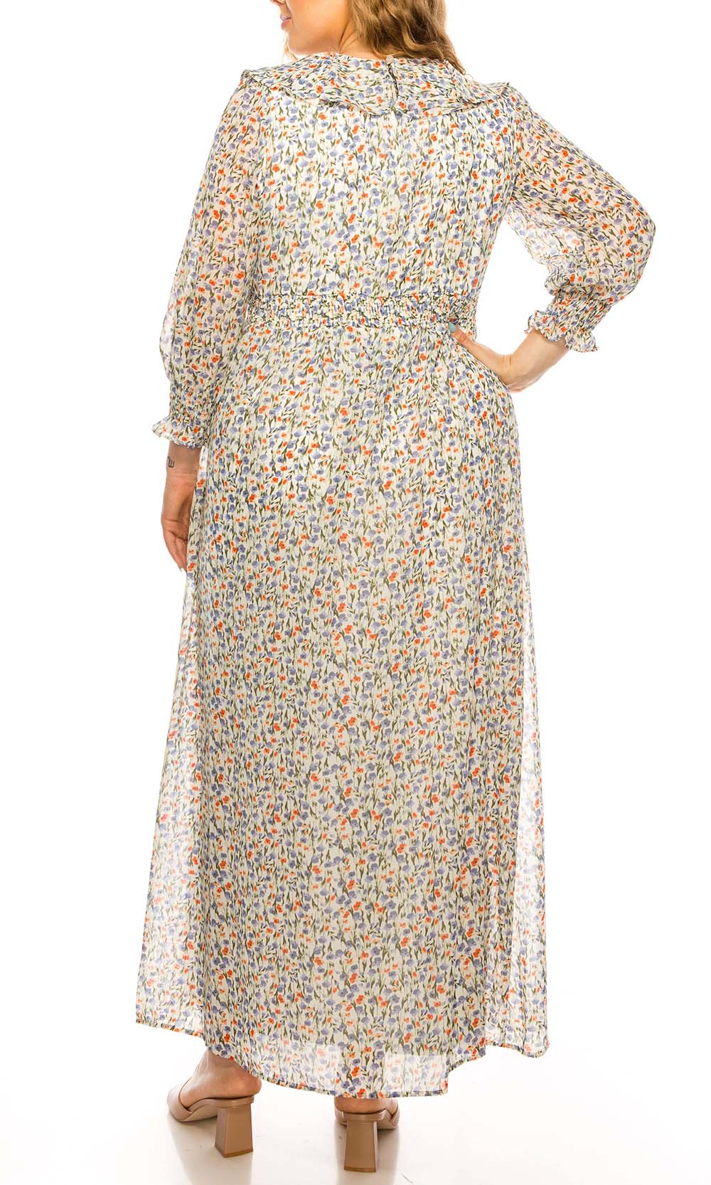 Make yourself into a vision of loveliness in this Shelby & Palmer M564 dress. This full length dress fashions a V-neckline supported by long sleeves in a floral printed bodice. Revealing an A-line silhouette, this also displays a full back to complete the look. Proceed in confidence with as you exude your charm in this Shelby & Palmer creation. Model is wearing Ivory Blue Coral color.