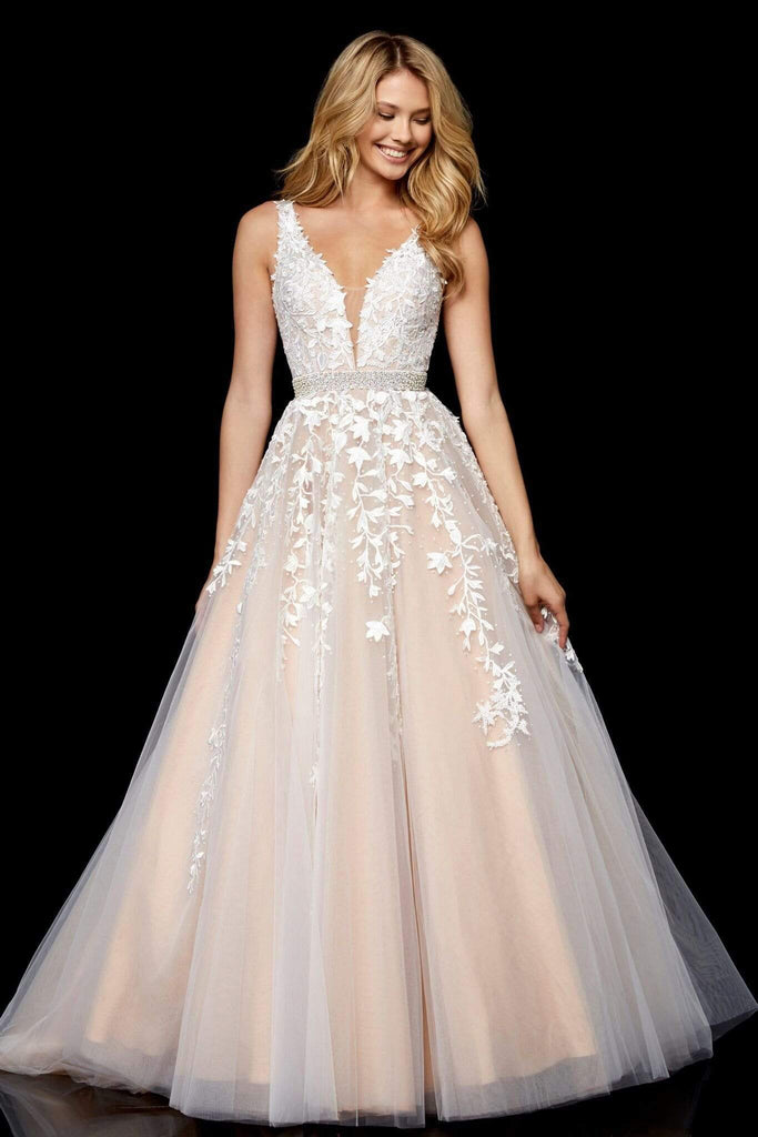 | Details: | Tulle, Embroidery appliques, Beaded, Sheer mesh, Beaded belt, Sleeveless, V back, Back zipper closure, Fully lined |