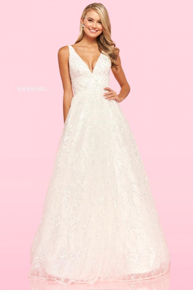 You will be an enchanting beauty in Sherri Hill 54177. Have a soft, comfortable and mellifluous feeling as yo0u wear this A-line dress with glitters as glamour. It presents in V neckline and V cut back with invisible back zipper closure. This Sherri Hill creation is simply perfect for your next formal party! Model is wearing Ivory color.