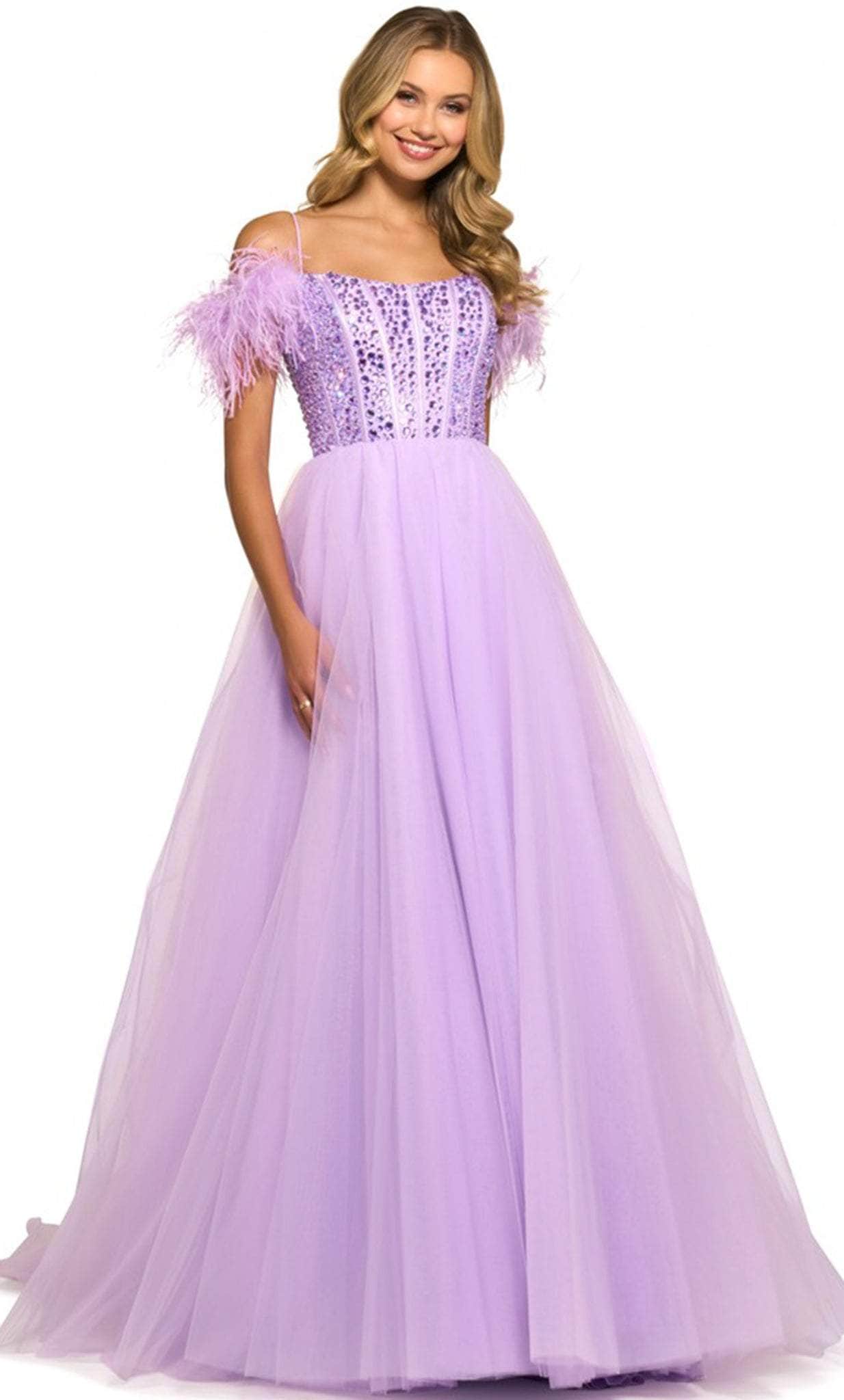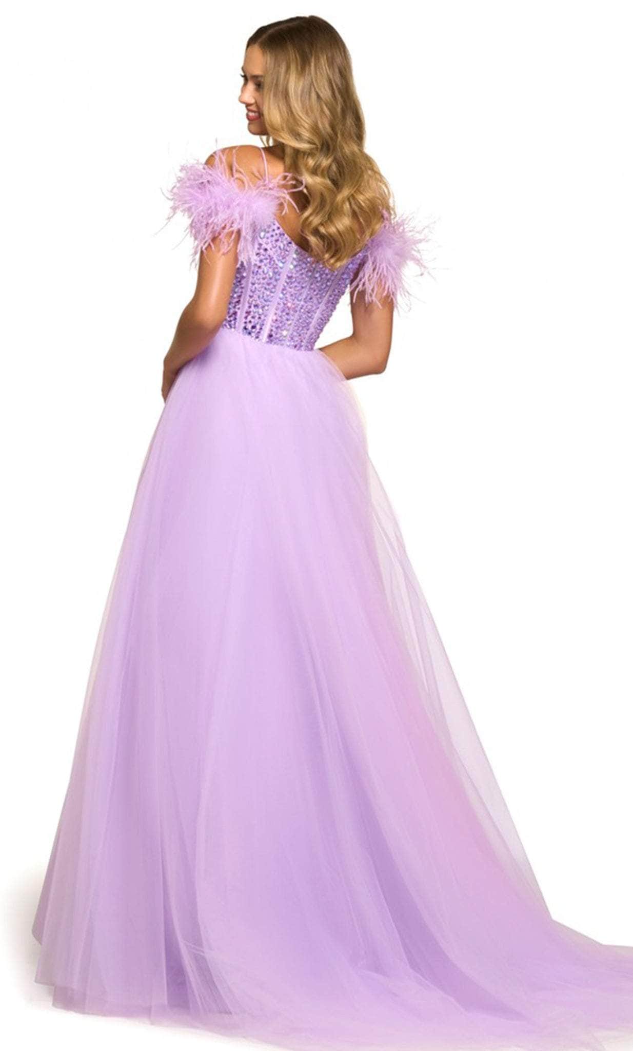 | Details: | Cold Shoulder, Beaded Corset Bodice, Feather Details, Train |