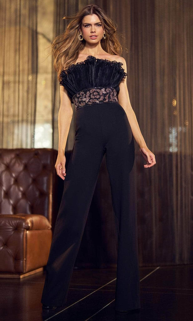 Experience the perfect blend of sophistication and modernity with Sherri Hill 55829, a stunning scuba jumpsuit that is sure to make a statement. The crumb catcher organza pleated neckline adds a touch of elegance, while the beaded empire waistline accentuates your curves. With its back zipper closure, this jumpsuit ensures a seamless fit. The straight-leg pants elongate your silhouette, giving you a sleek and stylish look. Sherri Hill 55829 will elevate your fashion game to new heights. Model is wearing Black color.