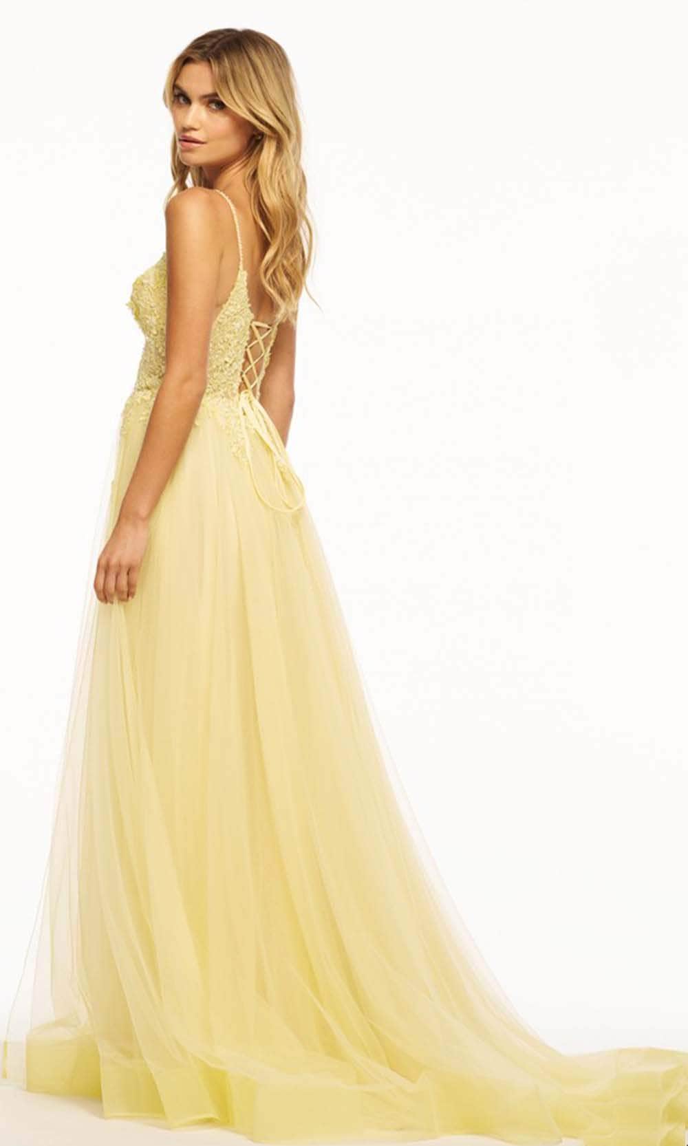 Show off your vibrant personality with this Sherri Hill 55998, a captivating tulle A-Line gown that embraces a timeless and enchanting design. The lace bodice adds an element of romance, creating a delicate and refined focal point. The lace-up back ensures a perfect fit, while the A-Line silhouette complements the figure beautifully. This Sherri Hill 55998 is a perfect choice for those seeking a seamless blend of modern style and classic allure, making a statement on any special occasion with its intricate lace details and elegant silhouette. Model is wearing Yellow color.