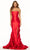 Channel red carpet glamour wearing this classy Sherri Hill 56235 masterpiece. Adorned with awe-inspiring 3D floral appliques, this Mikado strapless gown showcases princess seam details that sculpt your figure with grace and elegance. It also flaunts a straight across neckline and a mid-open design at the back. The mermaid skirt gracefully cascades to the floor and sweeping train, ending with a thigh-high slit for ease of walking. This Sherri Hill 56235 masterpiece ensures you feel like a true queen of the night. Model is wearing Red color.