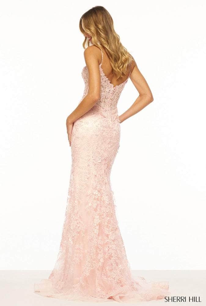 Be ready for a perfect and fantastic event with this Sherri Hill 56252, a dazzling sequin lace-fitted gown that epitomizes elegance and glamour. The sleeveless corset bodice showcases intricate details, creating a refined silhouette. The back's center zipper closure ensures a seamless fit. The floor-length skirt, in a sheath silhouette, exudes sophistication and concludes with a horsehair trim and train, adding a touch of drama. This Sherri Hill 56252 is a perfect blend of contemporary style and timeless allure. Models are wearing Lilac and Blush colors.