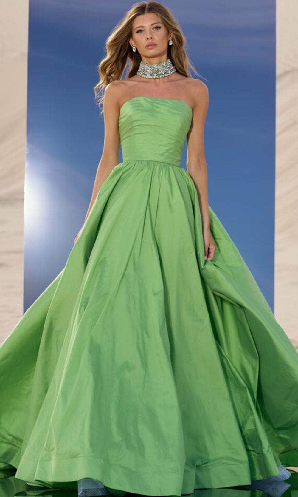 Exude sophistication in the breathtaking Sherri Hill 56748. This enchanting ball gown showcases a straight across neckline and a strapless ruched bodice that perfectly contours the torso, highlighting a graceful and feminine silhouette. The voluminous skirt cascades in soft folds, creating a regal and timeless look that ensures you will stand out in any grand event. Whether gracing a ballroom or attending a gala, this Sherri Hill 56748 long gown embodies classic elegance with a modern charm. Models are wearing Purple/Lilac, and chartreuse colors.