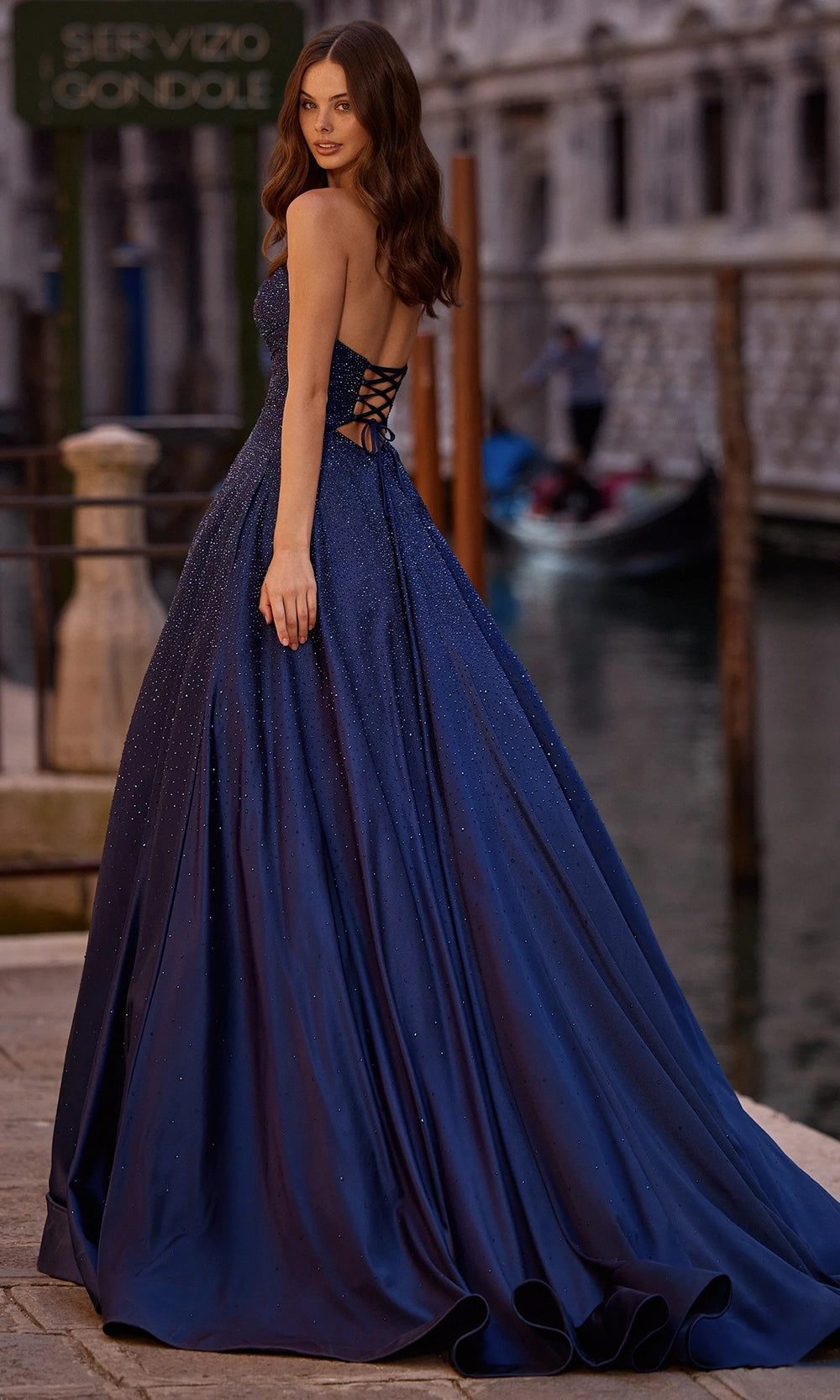Glamour and innovation unite in this Sherri Hill 57552, a breathtaking strapless gown that captures the essence of modern elegance. The structured bodice features a sweetheart neckline delicate cutout accents, creating a hint of intrigue while maintaining a refined appeal. Its full ballgown skirt flows with graceful volume, adorned with beading that catches the light beautifully. Perfect for grand events or formal evenings, this gown embodies both timeless charm and contemporary flair. Radiate sophistication with every step in Sherri Hill 57552, a design that celebrates confidence and poise. Model is wearing Navy color.