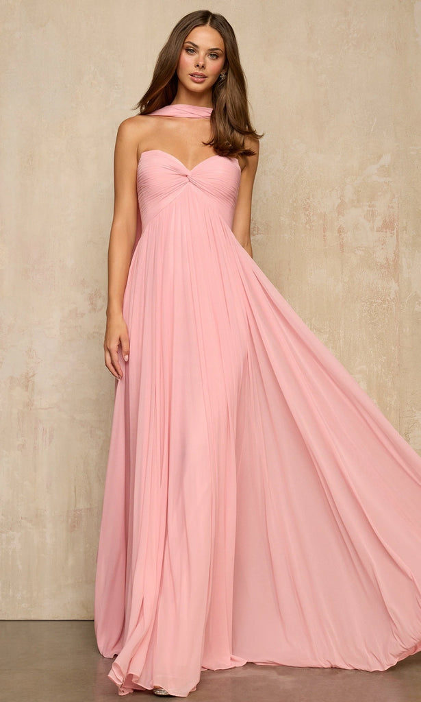 Sherri Hill 57942 channels graceful simplicity with its soft lines and gentle drape. With a strapless sweetheart neckline and delicately twisted, ruched bust detailing, the silhouette appears effortlessly lengthened and flattering. A coordinating scarf drapes delicately, enhancing the gown romantic aesthetic. Its A-line skirt moves effortlessly, offering lightness and poise in motion. Designed for women who appreciate refined style, Sherri Hill 57942 delivers timeless sophistication with an airy, graceful finish. Model is wearing Light Pink color.