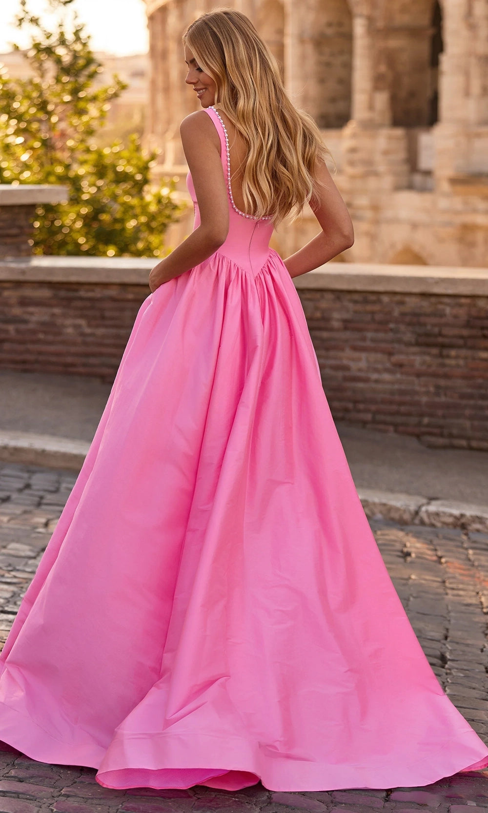 Graceful and commanding, the striking Sherri Hill 57956 captures classic design with contemporary refinement. Its structured bodice shapes the silhouette perfectly, complemented by delicate pearl accents for added brilliance. A gathered A-line skirt with a high slit allows effortless motion, balancing glamour with comfort. Whether for prom, pageants, or upscale events, this sleeveless gown guarantees poise with every turn. Let Sherri Hill 57956 bring your evening to life with polished sophistication. Model is wearing Candy Pink/Ivory color.