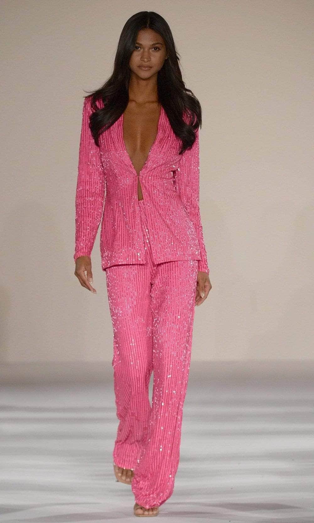 Showcase your finest features in the captivating Sherri Hill 71106 creation. Embellished with beads and sequins throughout, this two-piece ensemble exudes brilliance. The blazer-style top is adorned with long sleeves and a V neckline with lapels, exuding sophistication. The full-length pantsuit radiates glamour from afar, ensuring all eyes are on you. With its dazzling allure, this Sherri Hill 71106 masterpiece is guaranteed to steal the spotlight on any occasion. Model is wearing Neon Pink and Shiny Ivory colors.