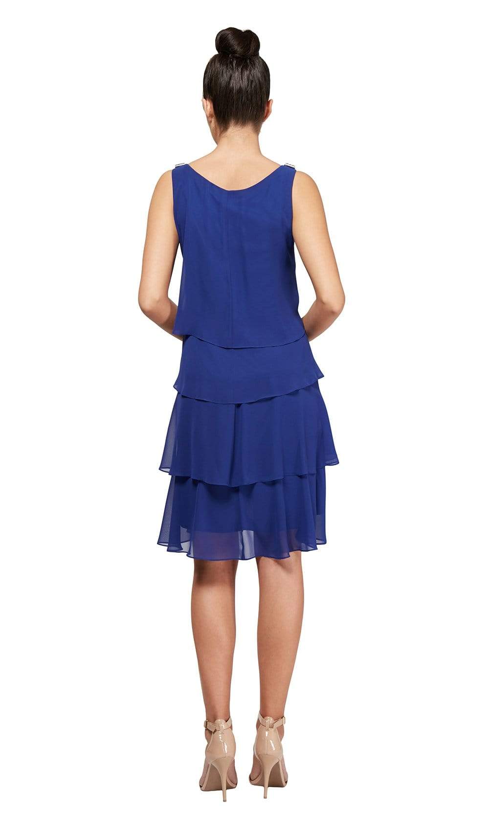 Step out in style wearing this spectacular S.L. Fashions 1140441 creation. Beautifully detailed with a tulip tiers cascading down its length, this divine piece shows a scoop neckline with metallic accents on the shoulders. Paired with scoop open back, the A-line skirt fabulouS.L.y captivates with a short hemline. This S.L. Fashions 1140441 dress gives you an intricate look that will last a lifetime. Models are wearing the Black, Faded Rose, Fig, Iris, Crimson, and Amethyst colors.