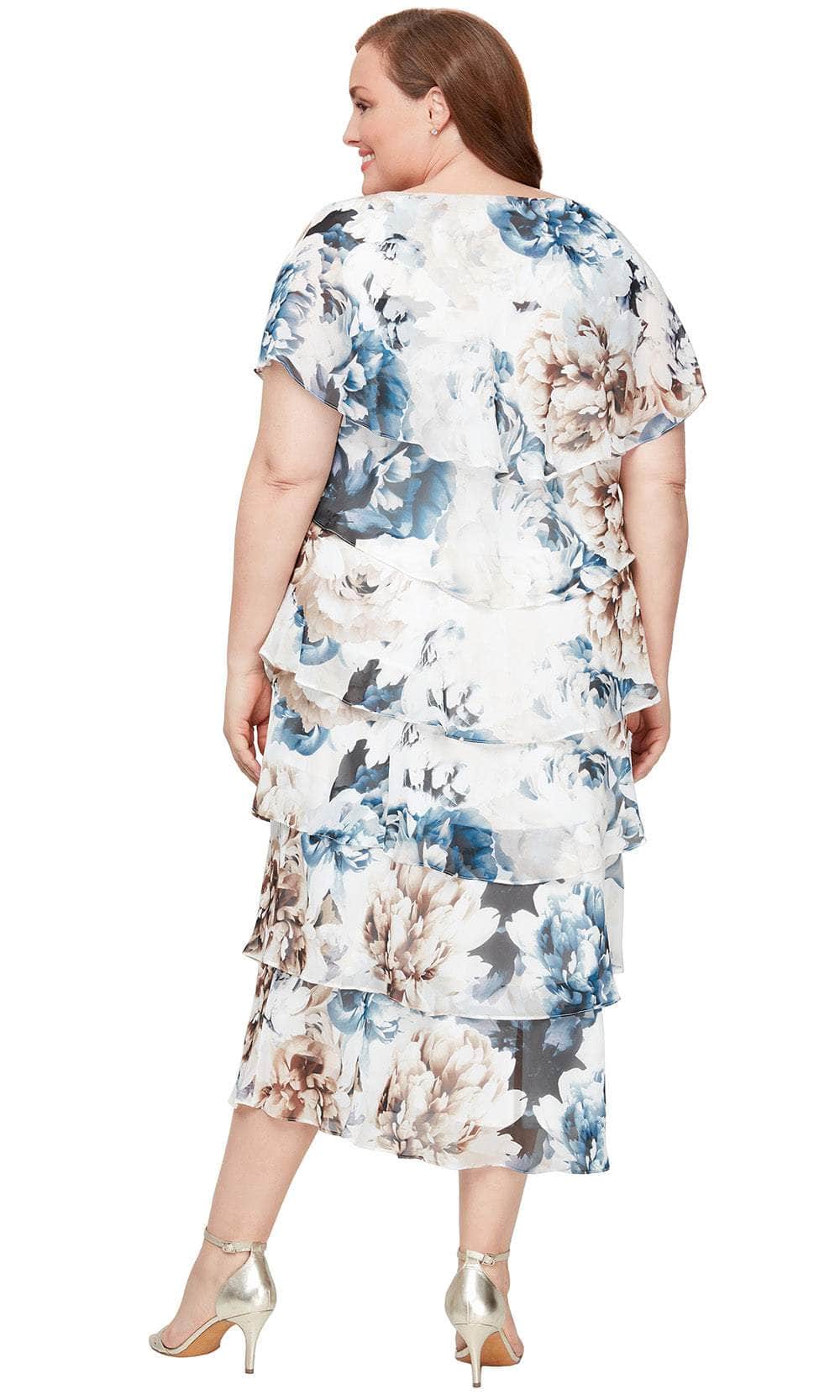 Celebrate your next special occasion in style with S.L. Fashions 9471936 masterpiece. The tea-length dress showcases a sophisticated floral print on a lightweight chiffon fabric. Stunning features are the graceful tiered layers that cascade beautifully down the silhouette, while the capelet sleeves and beaded shoulders offer a feminine touch. A soft scoop neckline and a comfortable natural waistline complete this A-line dress, designed to flatter every figure. Whether you are attending a garden party or a wedding, the S.L. Fashions 9471936 promises a polished and charming look. Model is wearing Ivory Multi color.