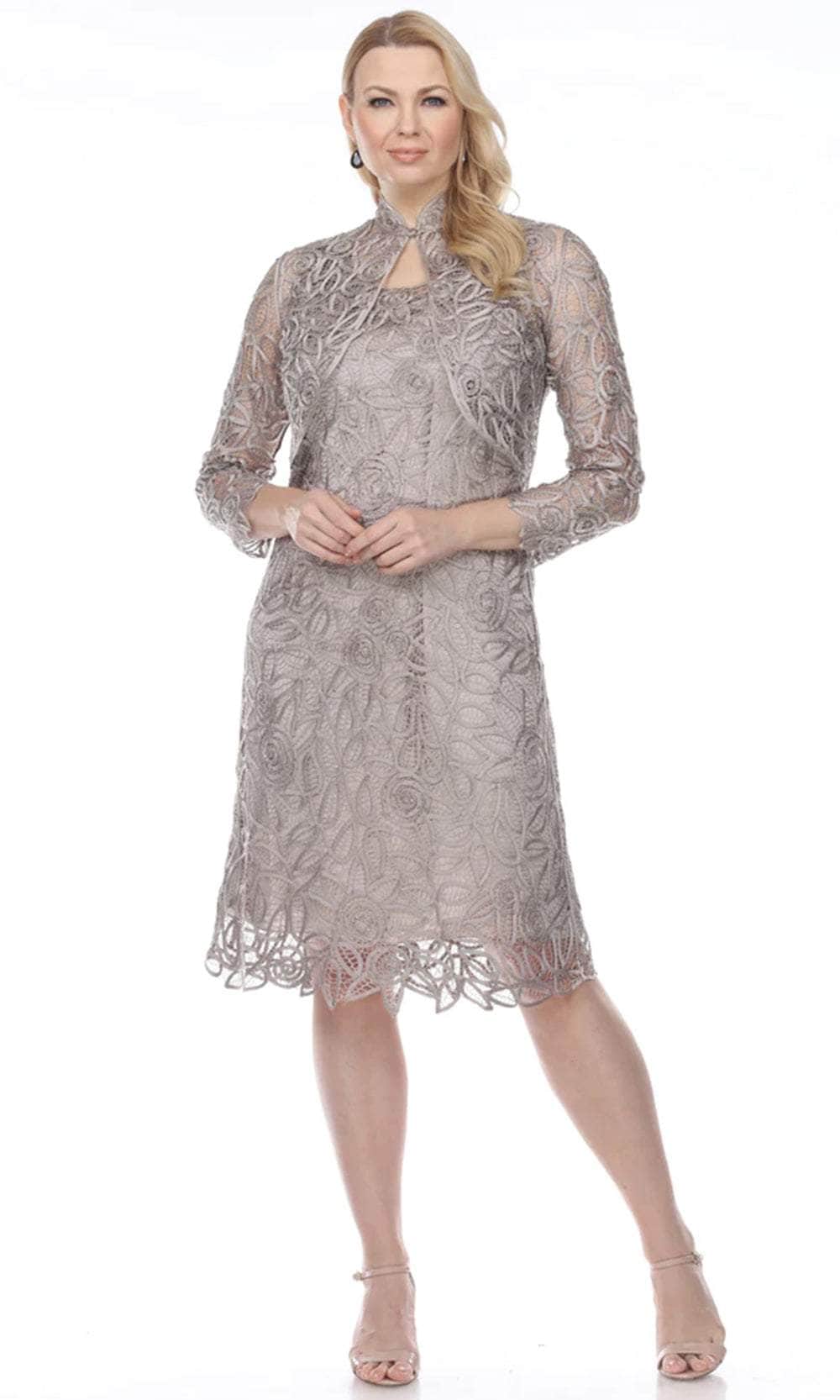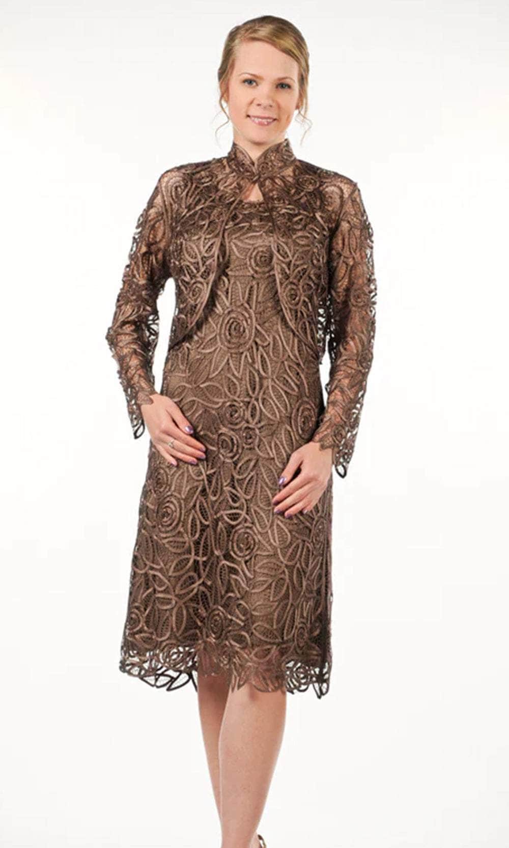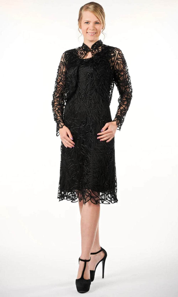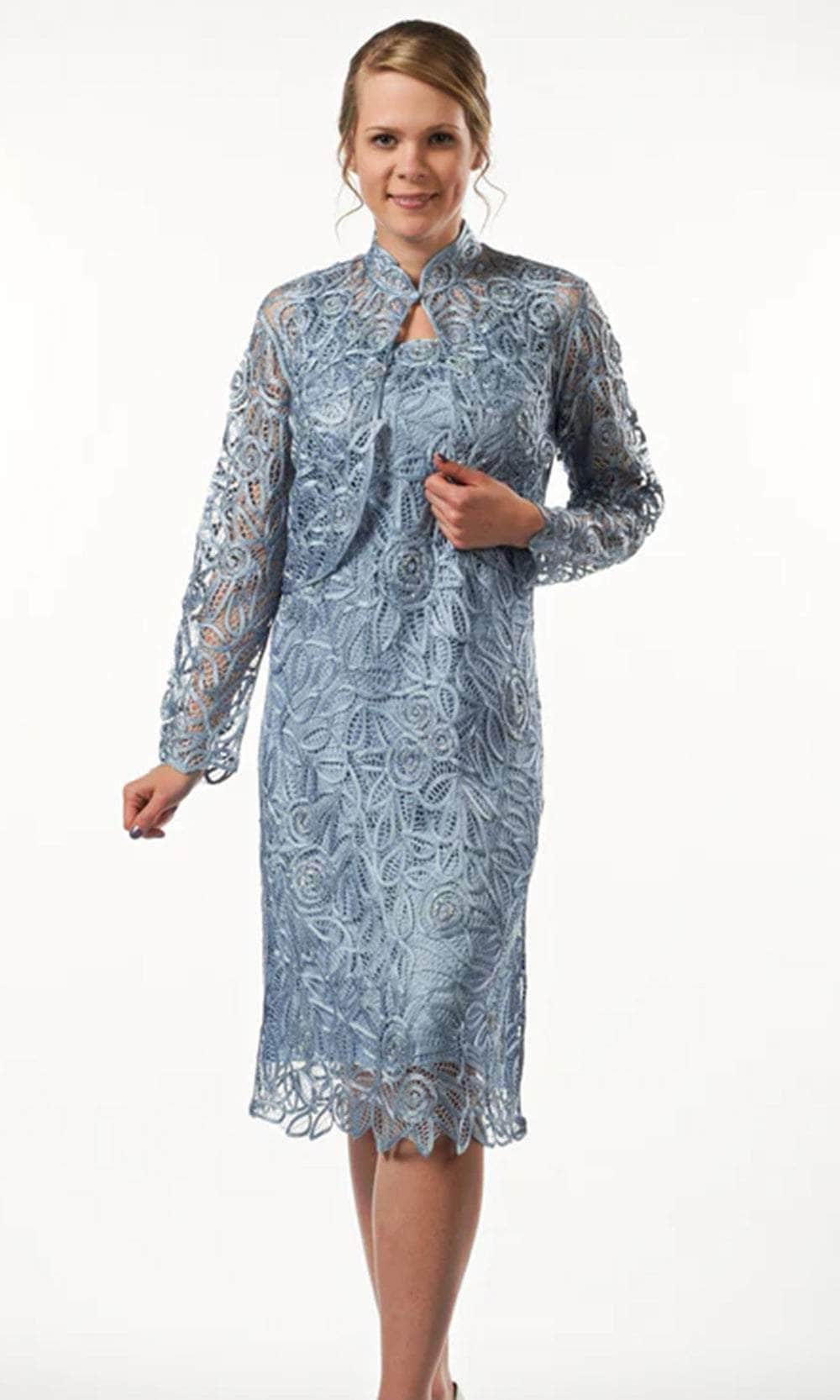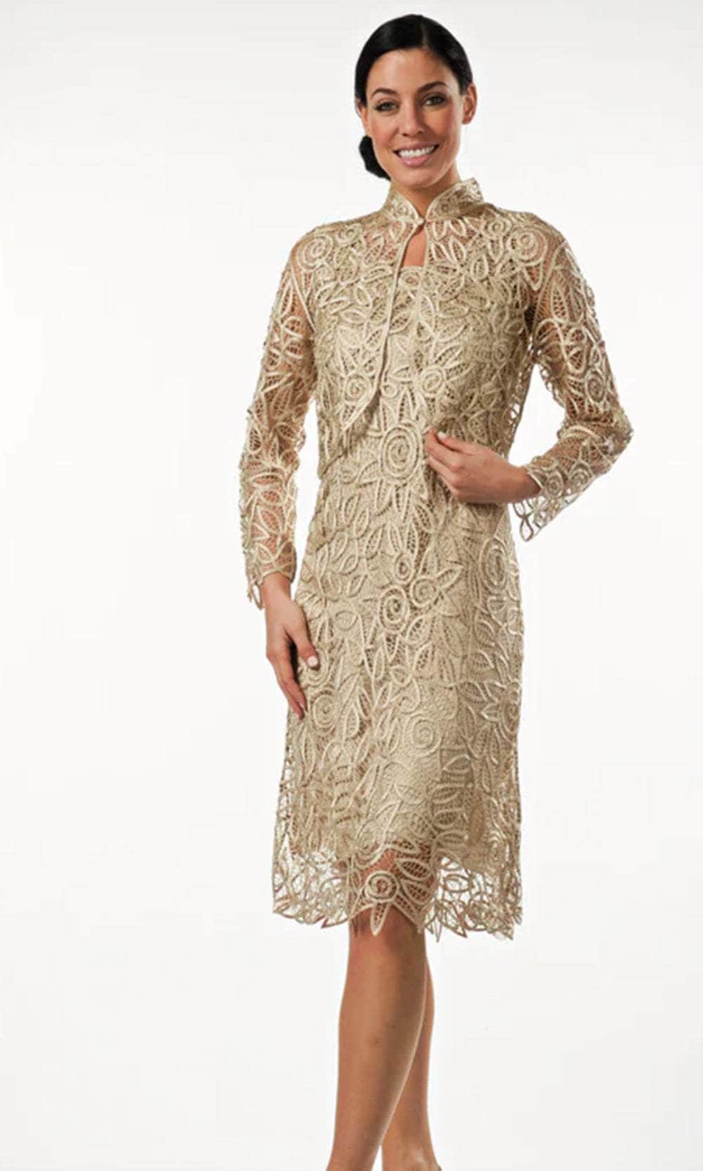 Hand-embroidered and crocheted with glittering beads mandarin collar jacket with matching short tank dress, easy to wear for day or night event and gives both casual and formal styles to wear with jacket.