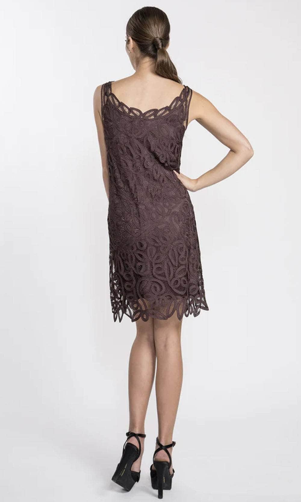Cut to flatter, this short dress features an alluring neckline with lace trim. Just throw it on for any formal affair and tap into your romantic mood.