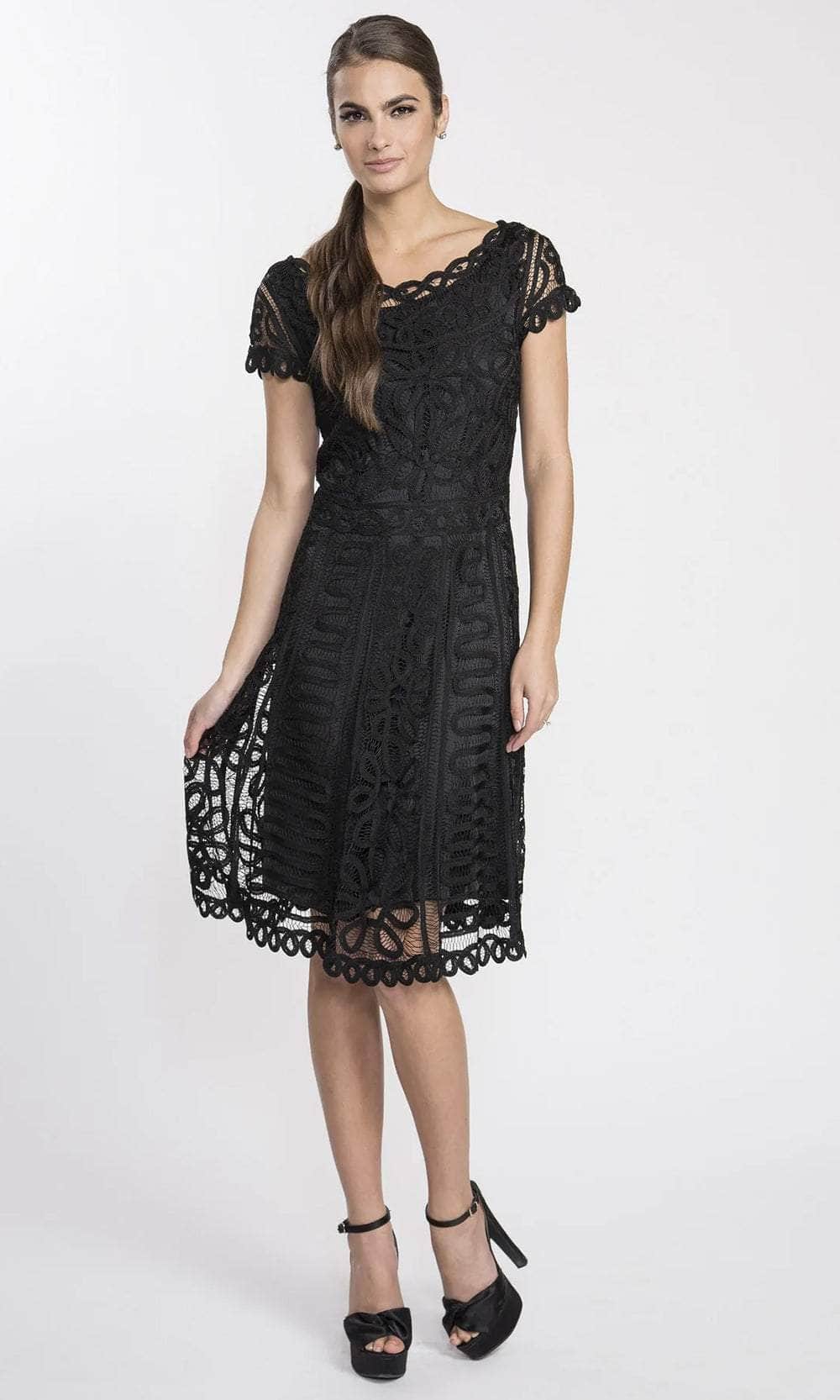 This enticing little number is a must-have for anything from bridesmaid to garden party to simply looking your best at lunch. Its feminine charm is enhanced by a pretty scalloped hem and translucent cap sleeves. It's stylish, simple, and elegant.