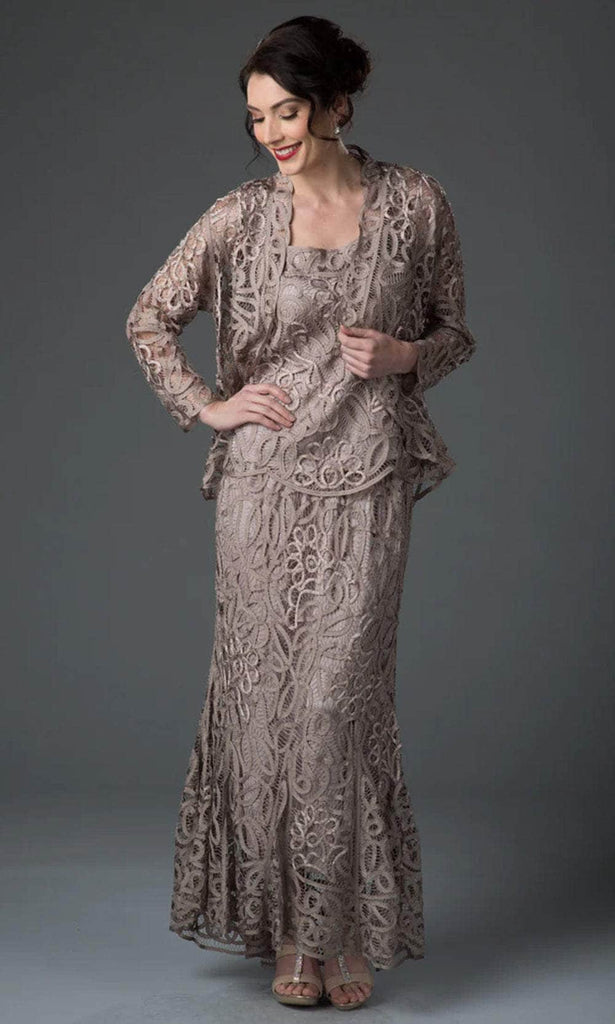 One of Soulmates newest three-piece outfit keeping the same figure-flattering  details of fit and crochet of original D9120.  This three piece is a beautiful tank, full length godet skirt, and sheer short hip-length jacket. You'll fall in love  with the flower crotchet with subtle beading. The fully lined skirt goes but you can easily tailor it to be the perfect length if needed.