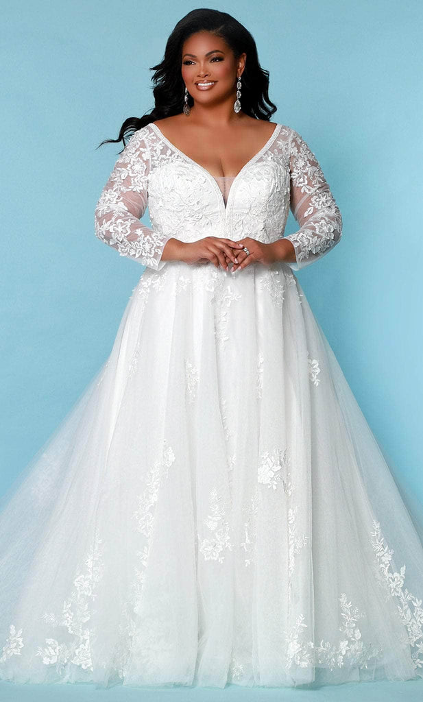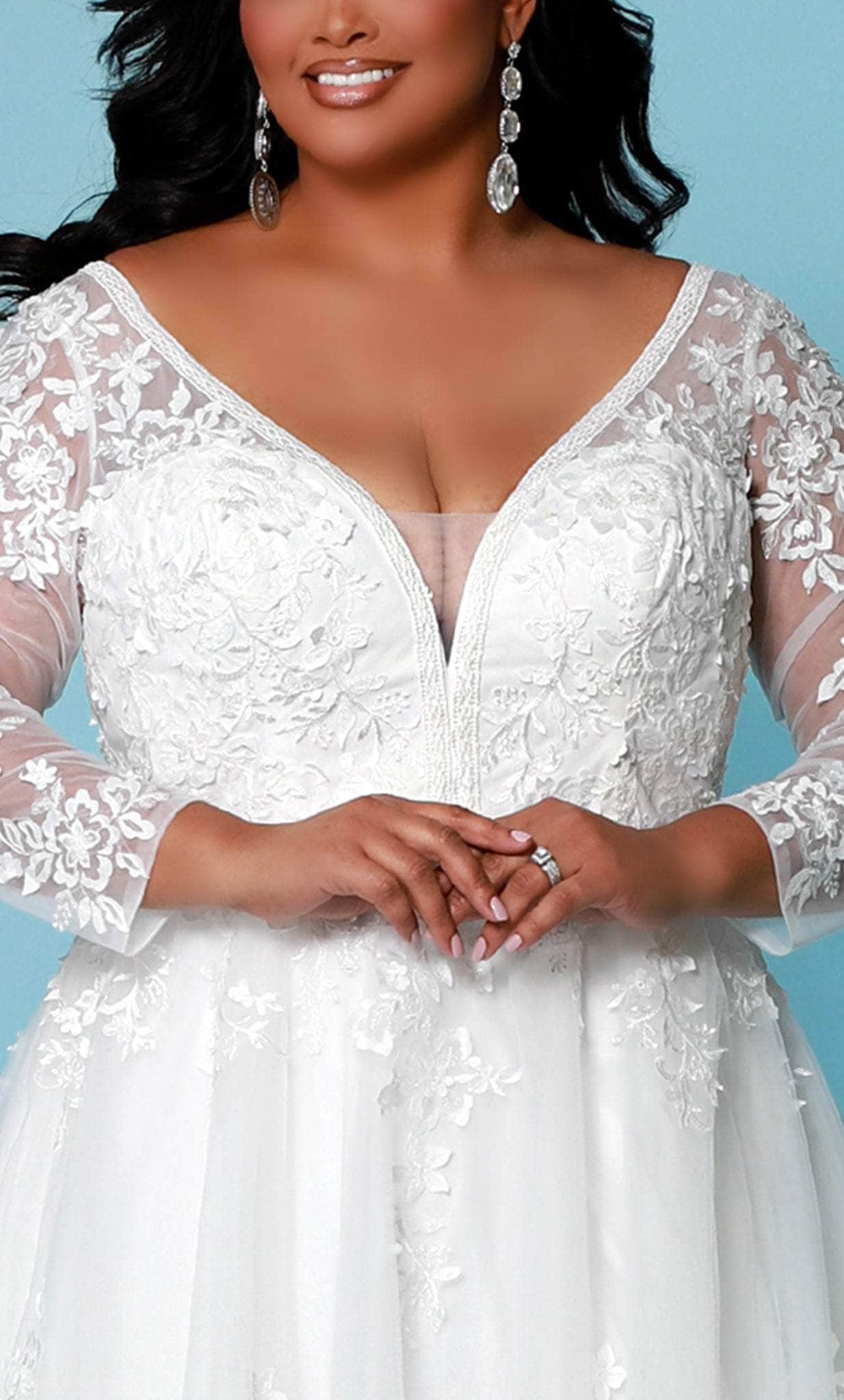 Turn yourself into a headturning beauty by slipping into this absolutely eye-catching Sydney's Closet SC5275 by Sydney's Closet SC5275. This dress is designed with a figure-hugging and busty bodice and a fully-lined skirt out of satin that is embedded into 3 layers of bridal tulle fabric, draping all together into a full floor-reaching length to give that A-line silhoutte which is the gold standard to any formal wedding occasions. Also, credit the exquisiteness of this dress with is applique-studded fabric that embellishes from the sheer net longsleeves, the bodice, hem, and train for a sophisticated and sensational effect. Moreover, the intricate trail of lace spotlights a V-neckline, thereby augmenting the romantic feeling provided by this dress. Sway to the music on your most special day in this blissful looking wedding creation Sydney's Closet SC5275 by Sydney's closet! Model is wearing Ivory color.