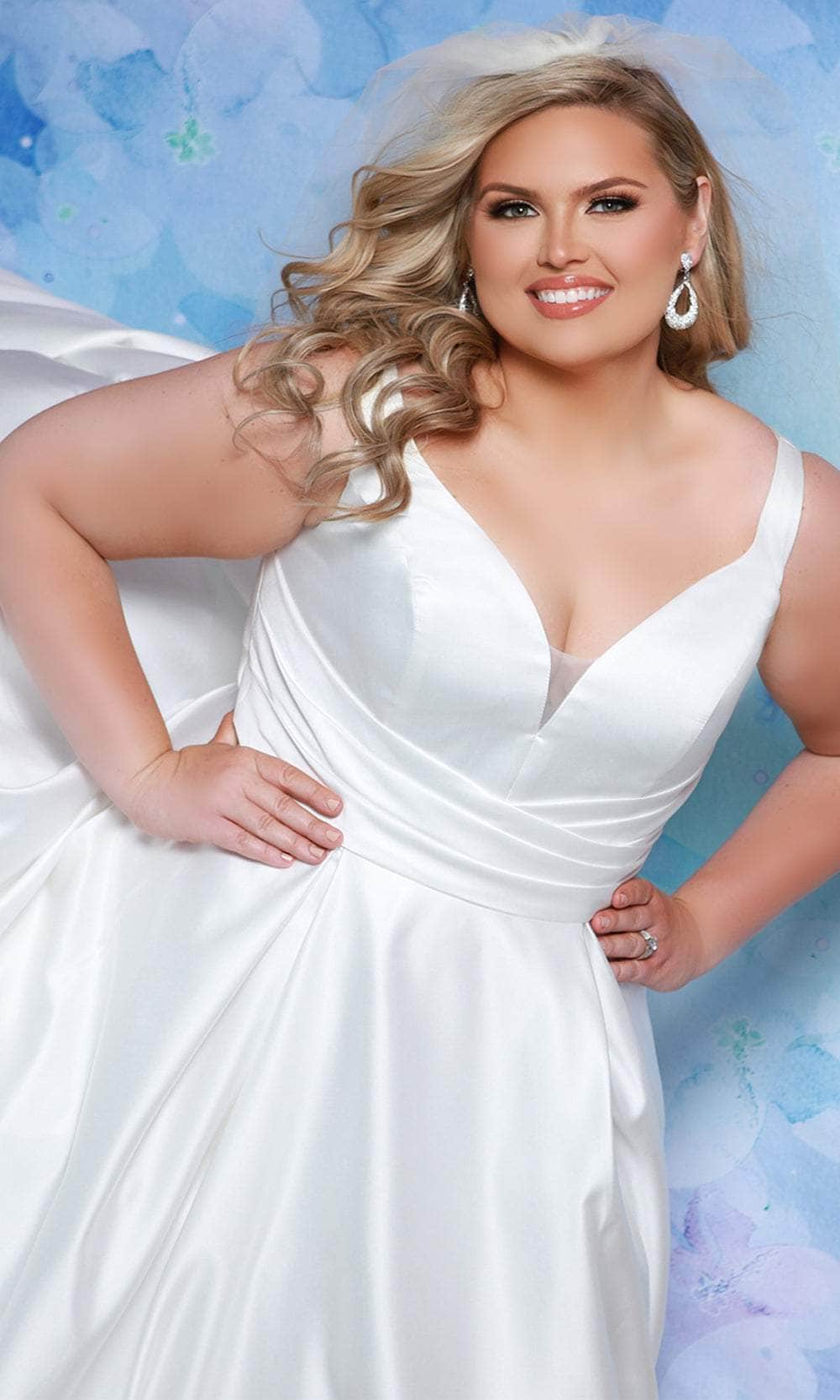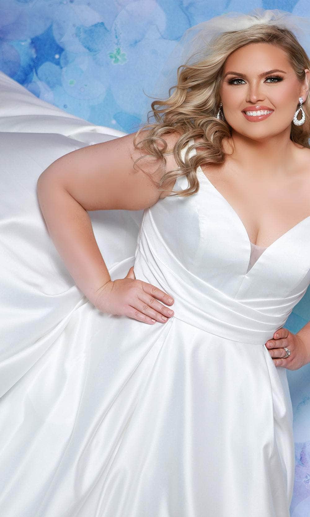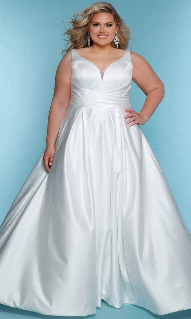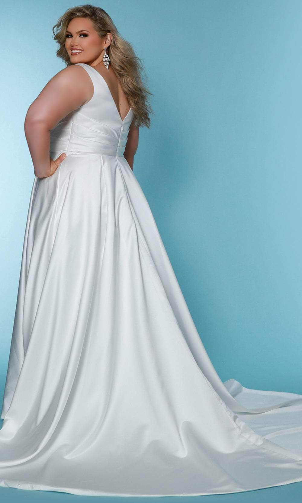 Sydney's Closet SC5317 is a prom gown tailored for the minimalist bride seeking a clean, unadorned aesthetic. Crafted from luxurious bridal satin, the classic A-line gown boasts box pleats that define the understated beauty. The sleeveless bodice, featuring a deep V-neckline and bra-friendly straps, showcases figure-flattering pleats accentuating the waistline. Deep skirt pockets add functionality for storing sentimental items. Whether planning an intimate destination wedding or a black-tie affair, Sydney's Closet SC5317 gives an extra touch of elegance for your special day. Model is wearing Ivory color.
