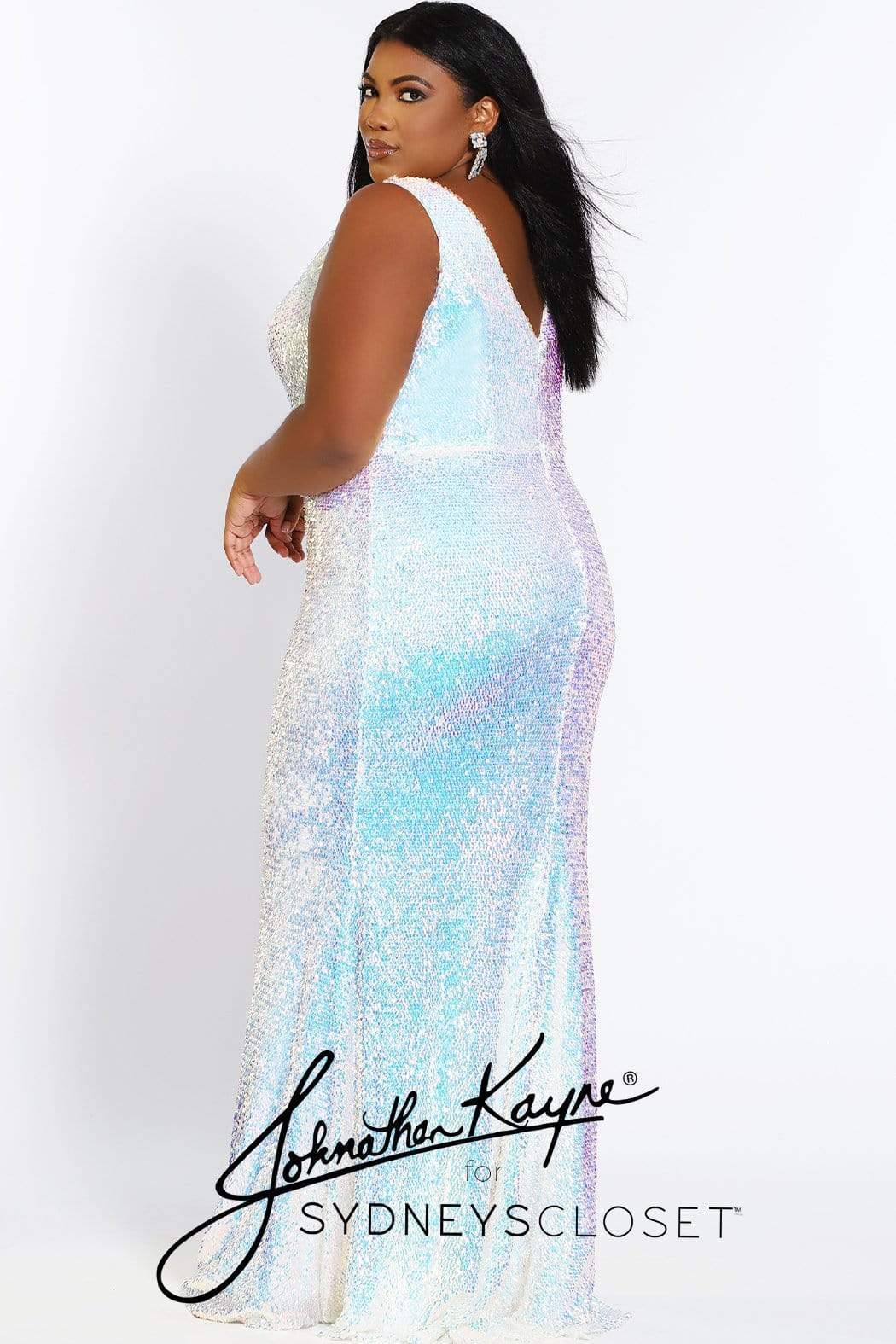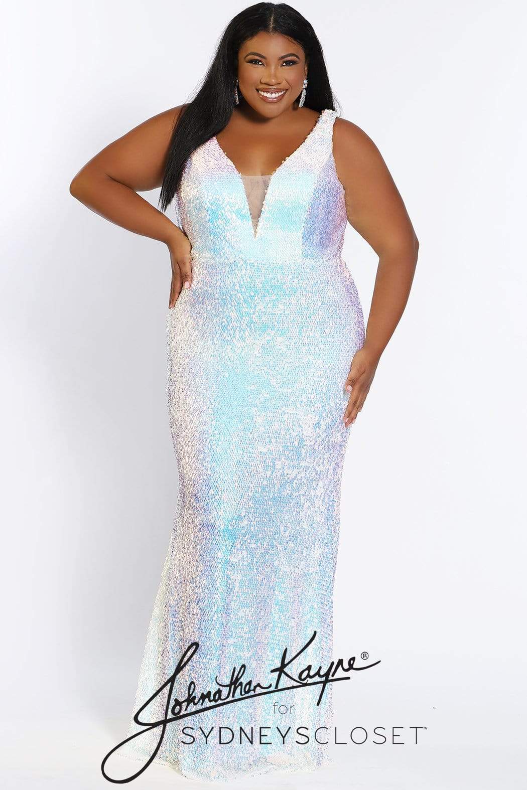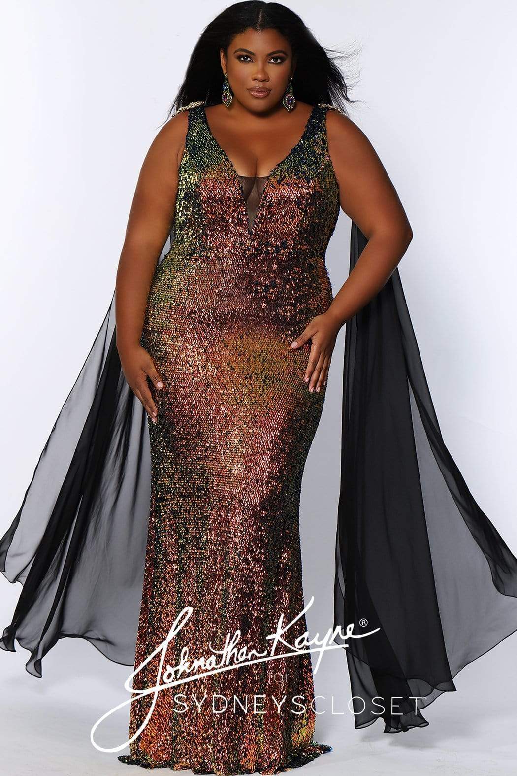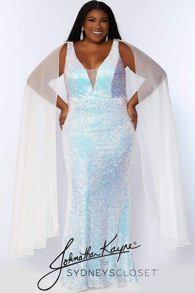 Capture the glamour as you walk on this stunning dress by Sydney's Closet JK2109. This sequined dress allures in a sleeveless, deep V neckline with sheer inset at mid-bust. The dress is styled with detachable chiffon sleeves. The skirt highlights your figure with its full length sheath silhouette with a sweep train finish. Mesmerize the crowd with your sophisticated flair in this Sydney's Closet masterpiece.