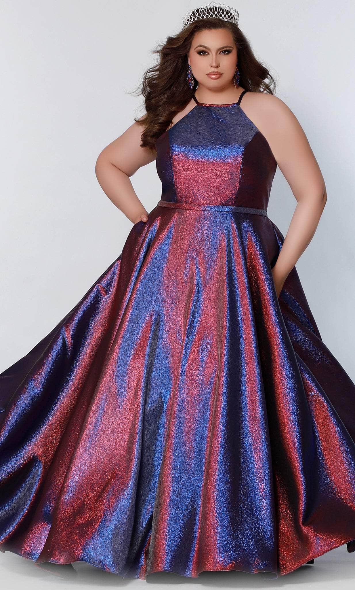 Exude that vibrant personality in this ravishing Sydney's Closet SC7334. Tailored from shimmering satin fabric that shines along the sleeveless bodice crafted with seams and crowned with a halter neckline. The back of this winning piece has a lace-up tie for an adjustable and perfect fit. A thin waistband cinched the natural waistline. The full-length skirt parades in an A-line silhouette. Be ready to fascinate everyone with this Sydney's Closet SC7334 masterpiece. Models are wearing Peacock and Prism colors.