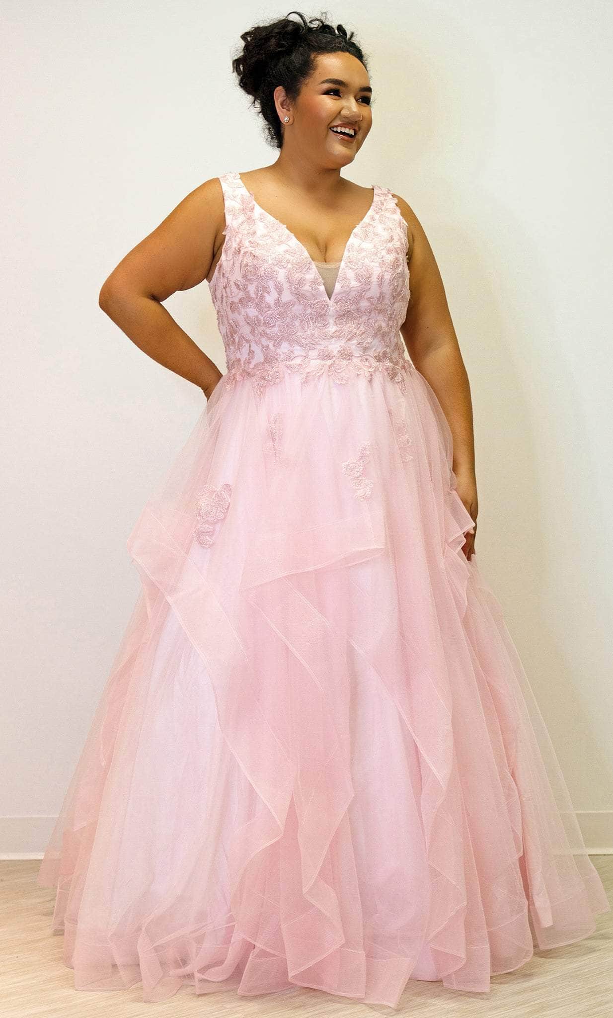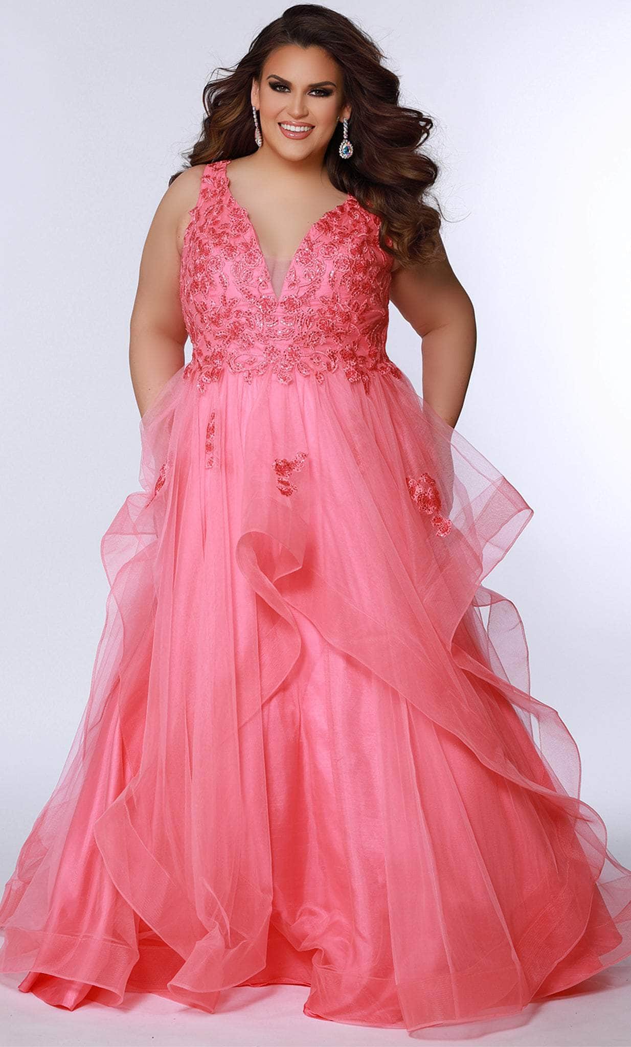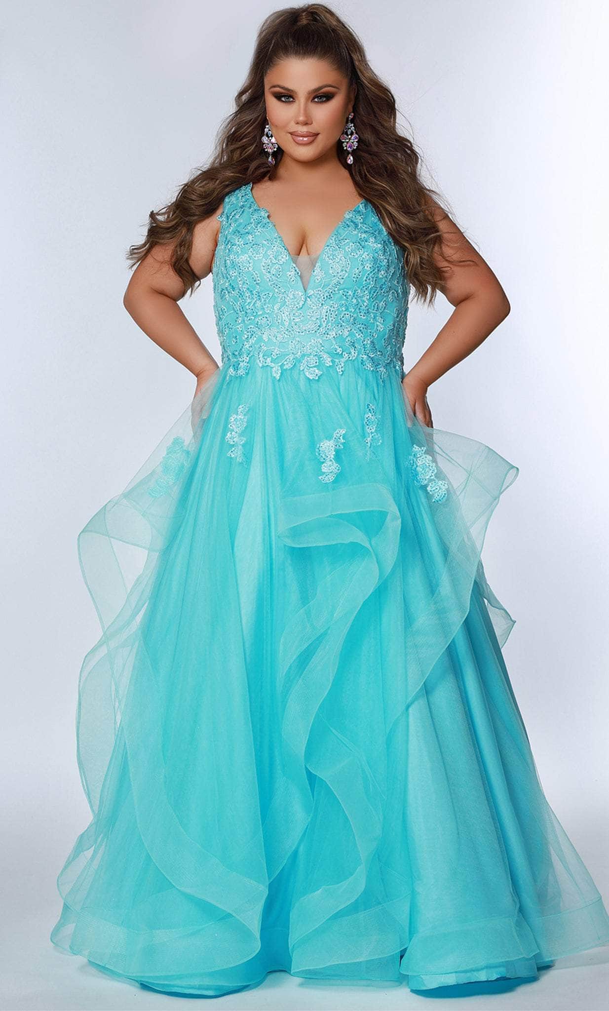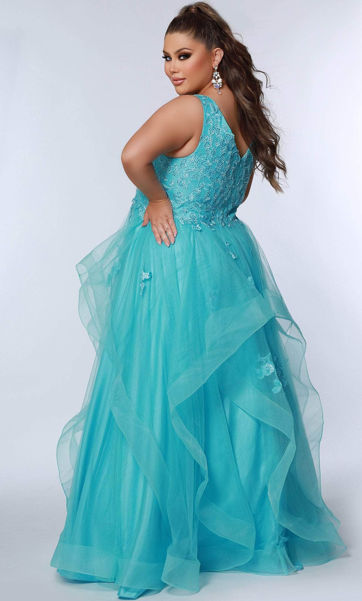 Every detail of this Sydney's Closet SC7347 creation is dripping with faultless charm. Lovely lace appliques and glittery sequins adorned this sleeveless gown for an eye-catching appeal. It showcases a wide shoulder strap that supports the plunging v-neckline and v-shaped back. With a dramatic horsehair hem and tiered design, the skirt flares a ballgown silhouette cascading in a full length hem. This Sydney's Closet SC7347 style will absolutely make you feel special! Models are wearing the Bluejay, Coral and Doll Pink colors.