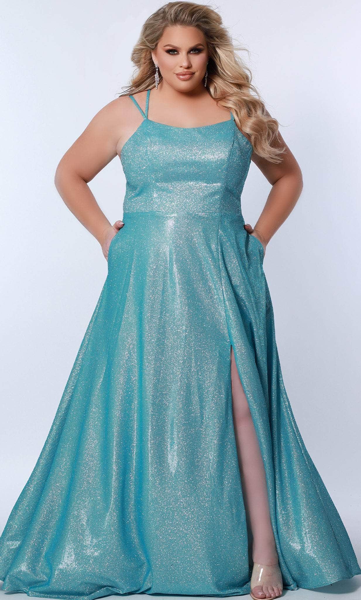 Make your grand entrance in Sydney's Closet SC7349 masterpiece. Captivates in shimmer net fabric, this sleeveless outfit features a scoop neckline held in place by dual thin shoulder straps. The back displays a mid-open detail with a zipper closure at the center to bring it all together. Revealing a thigh-high slit and pockets, the A-line skirt glimmeringly reaches the floor length hem and sweep train. This Sydney's Closet SC7349 gown is sure to display your natural beauty and grace. Models are wearing the Carnation, Dreamsicle, Topaz and Wisteria colors.
