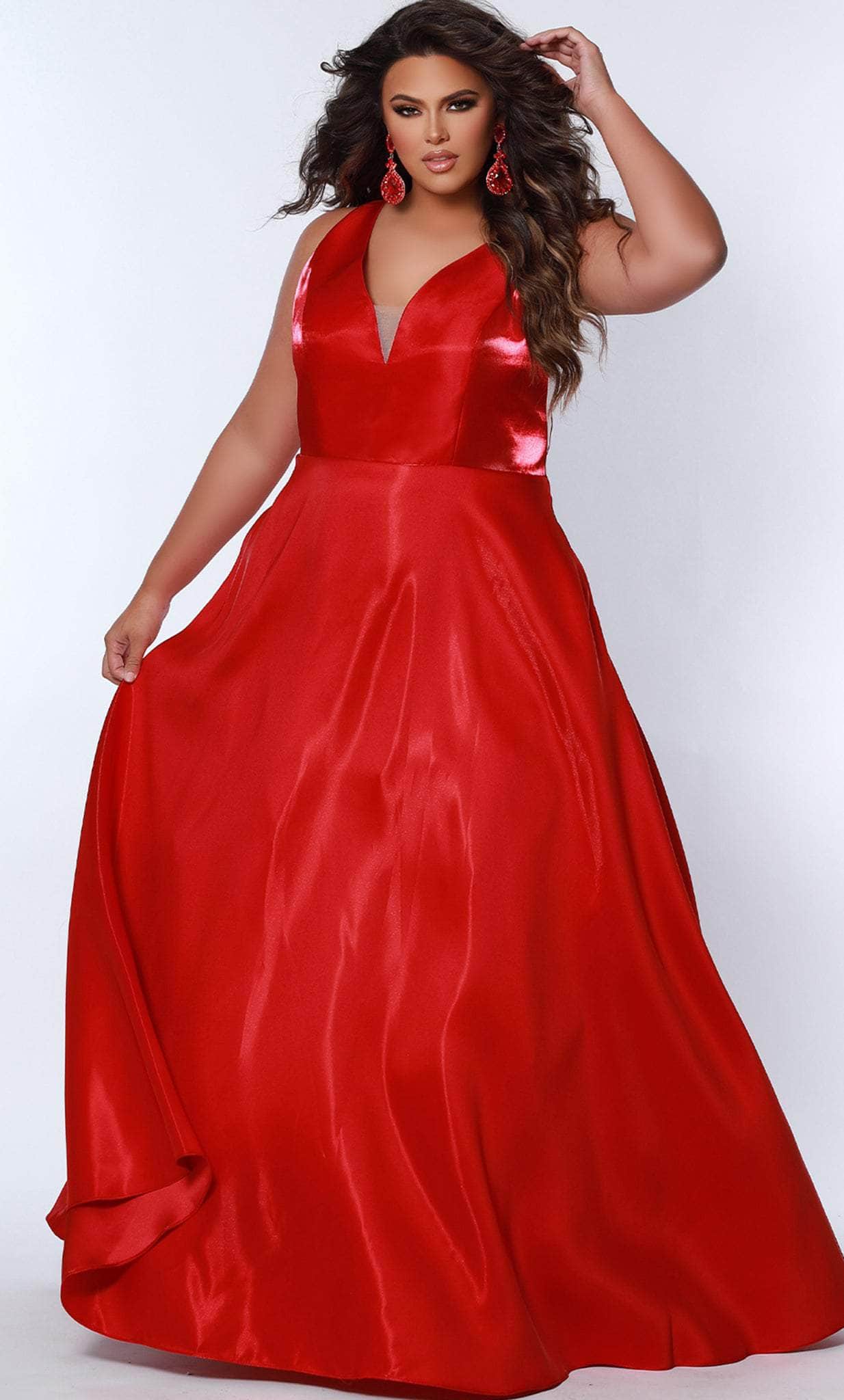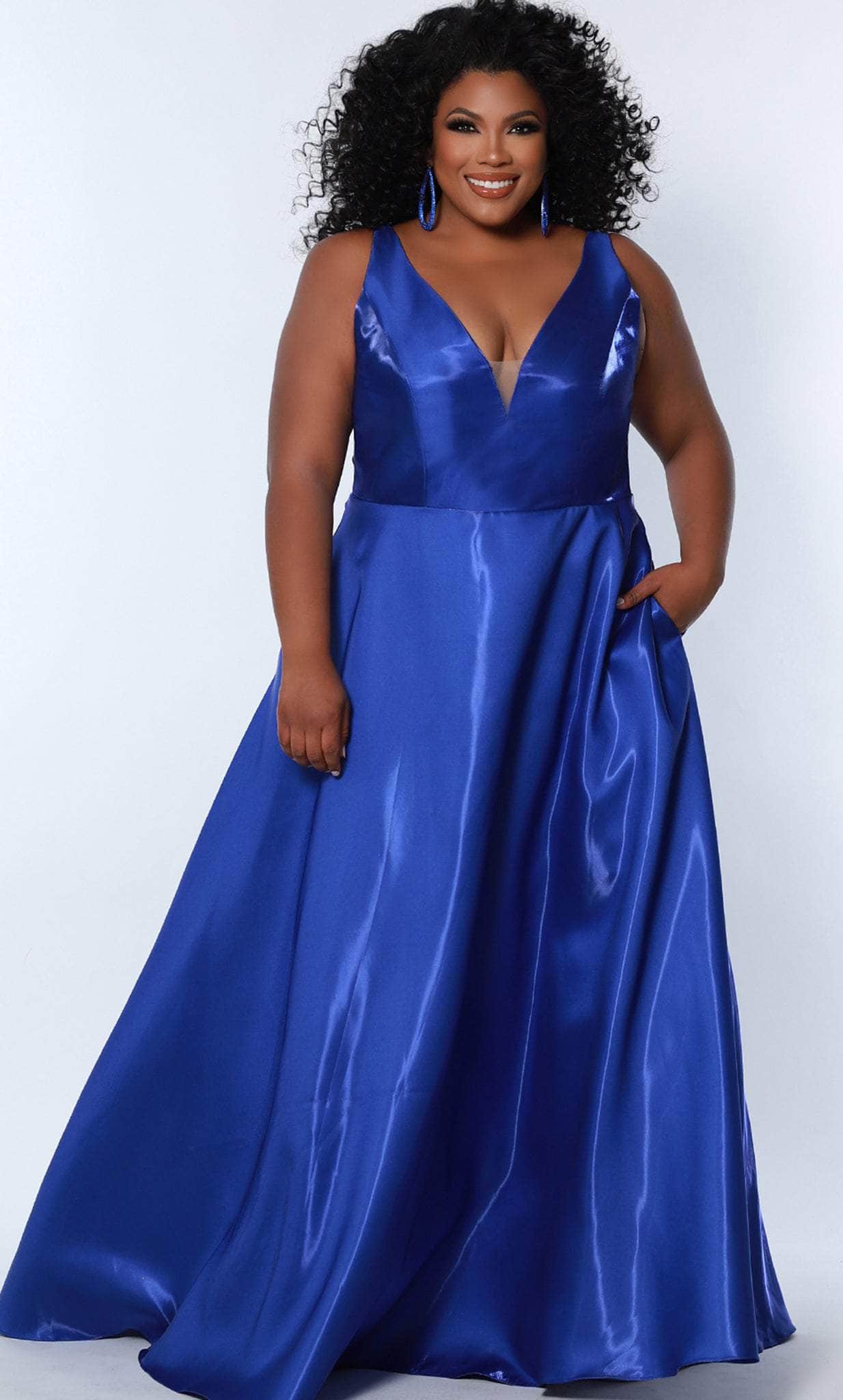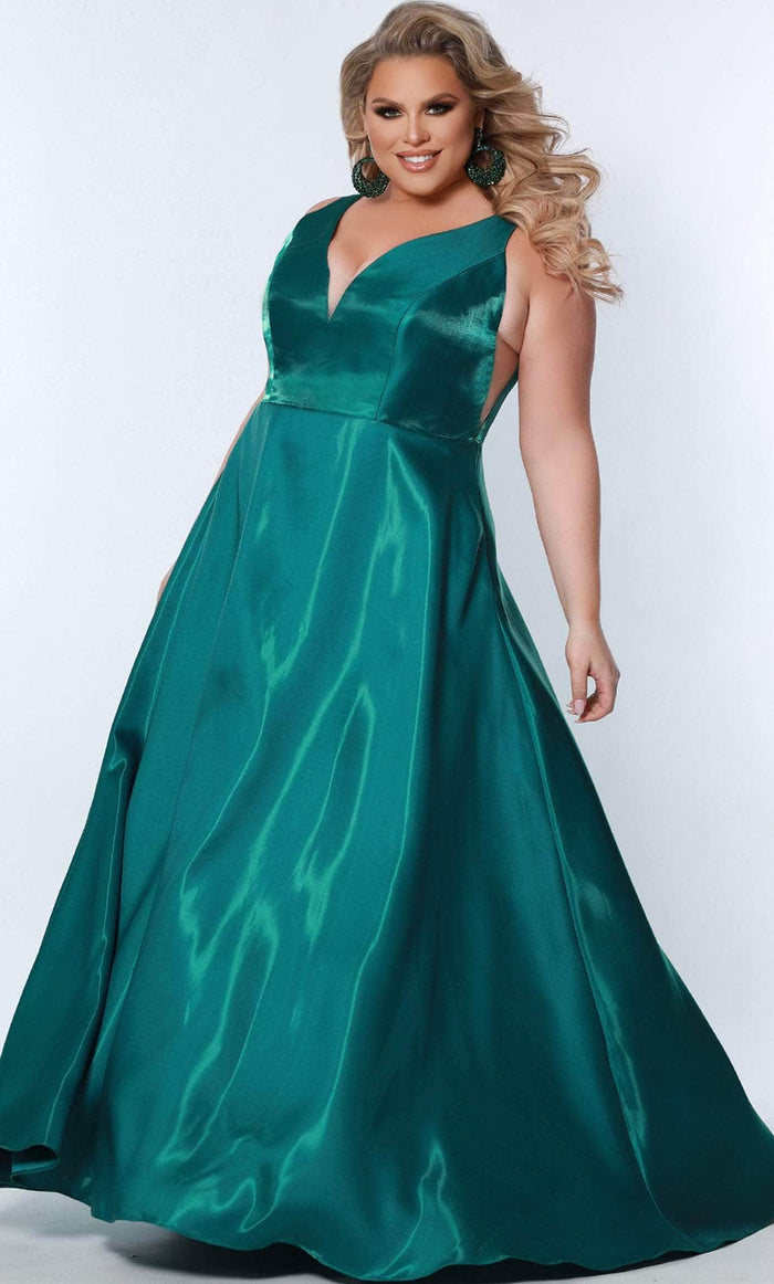 Strike a pose as you enter the room in this exquisite Sydney's Closet SC7356 creation. This simple, but stunning satin gown flourishes a sleeveless plunging v-neckline, wide shoulder straps and a sultry sheer side panel. The sexy v-open back has an attention-grabbing bow accent along the zipper closure. Completing this style is an A-line skirt that cascades beautifully in a full length hem and ends with side pockets. This Sydney's Closet SC7356 gown is a stunning look for any special event. Models are wearing the Emerald, Ruby and Sapphire colors.