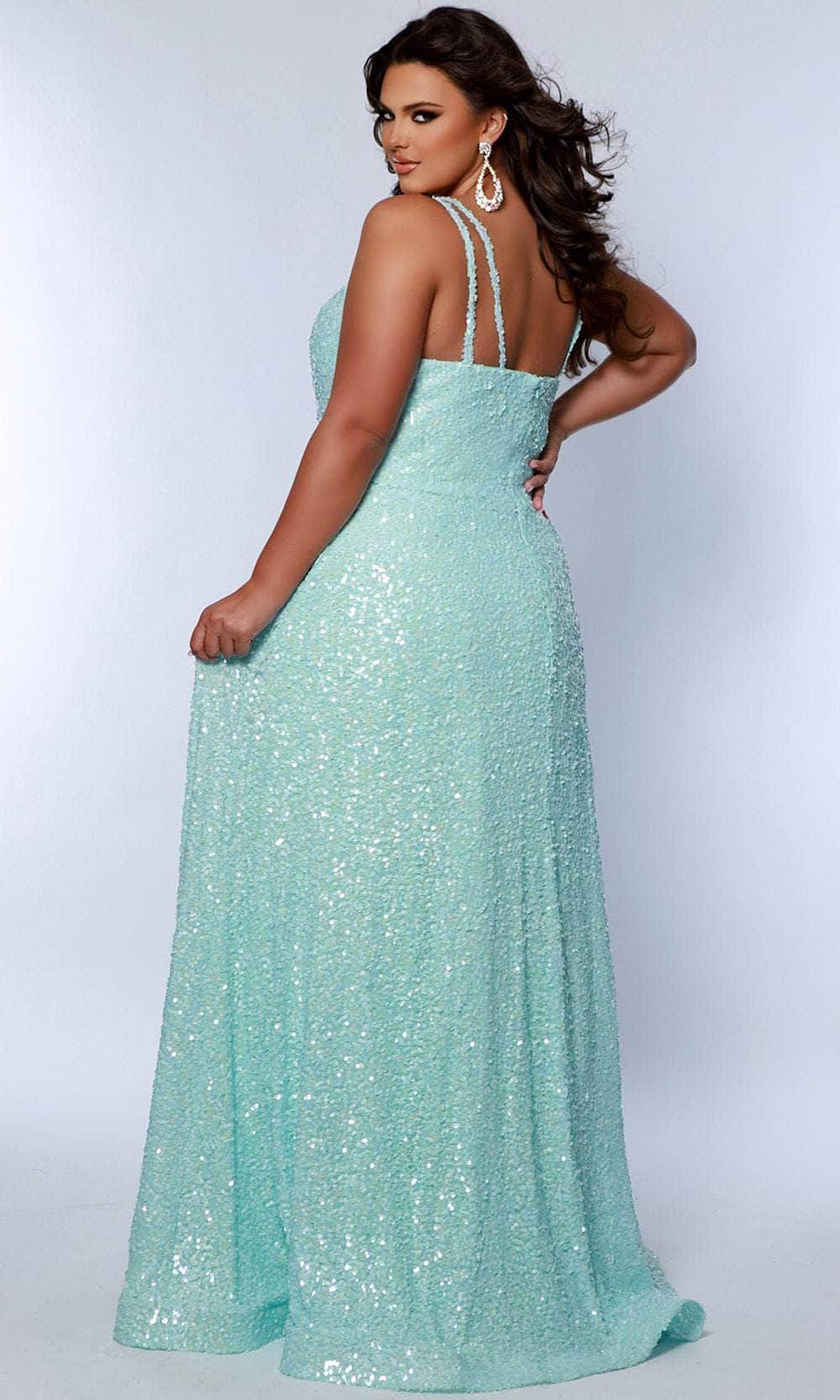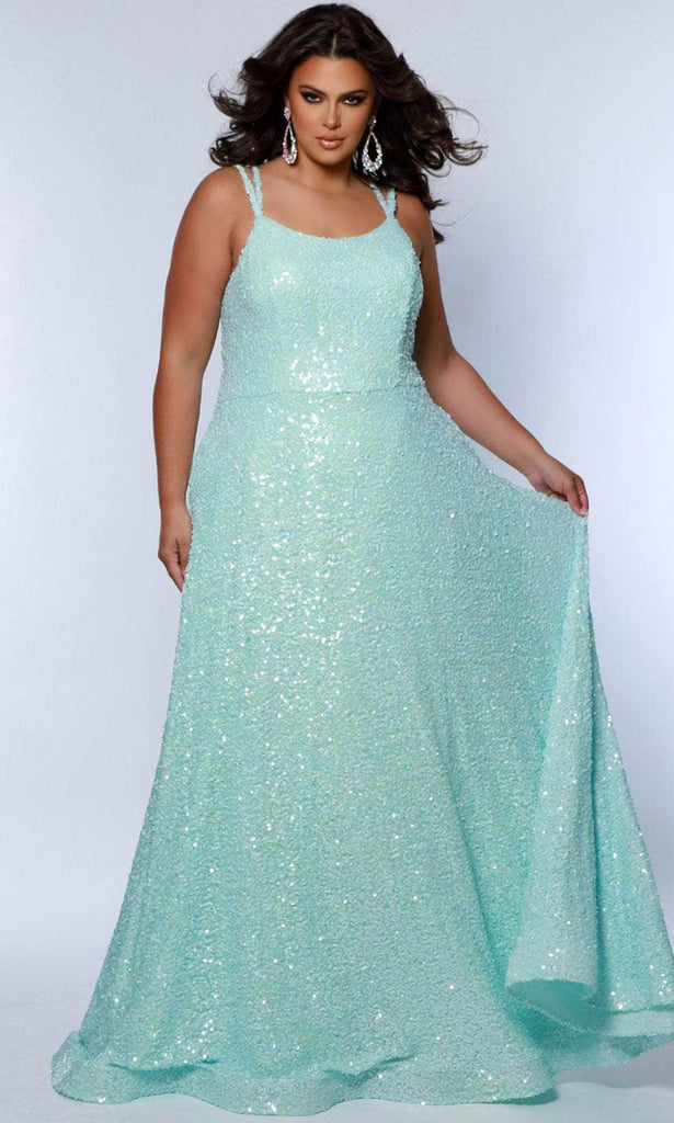 In this masterpiece by Sydney's Closet SC7365, dazzle like a movie star. Embellished with opulent sequins, the dress sparkles and catches the light from every angle. Features are a captivating scoop neckline and dual thin straps that beautifully frame your shoulders. The mid-open back has a zipper closure at the center to ensure a secure and smooth fit. With side pockets to keep your stuff, the skirt gracefully forms an A-line silhouette that spills to the floor and ends in a horsehair hem. You will be an enchanting beauty in Sydney's Closet SC7365 creation. Models are wearing Baby Pink, Lilac, and Seafoam colors.