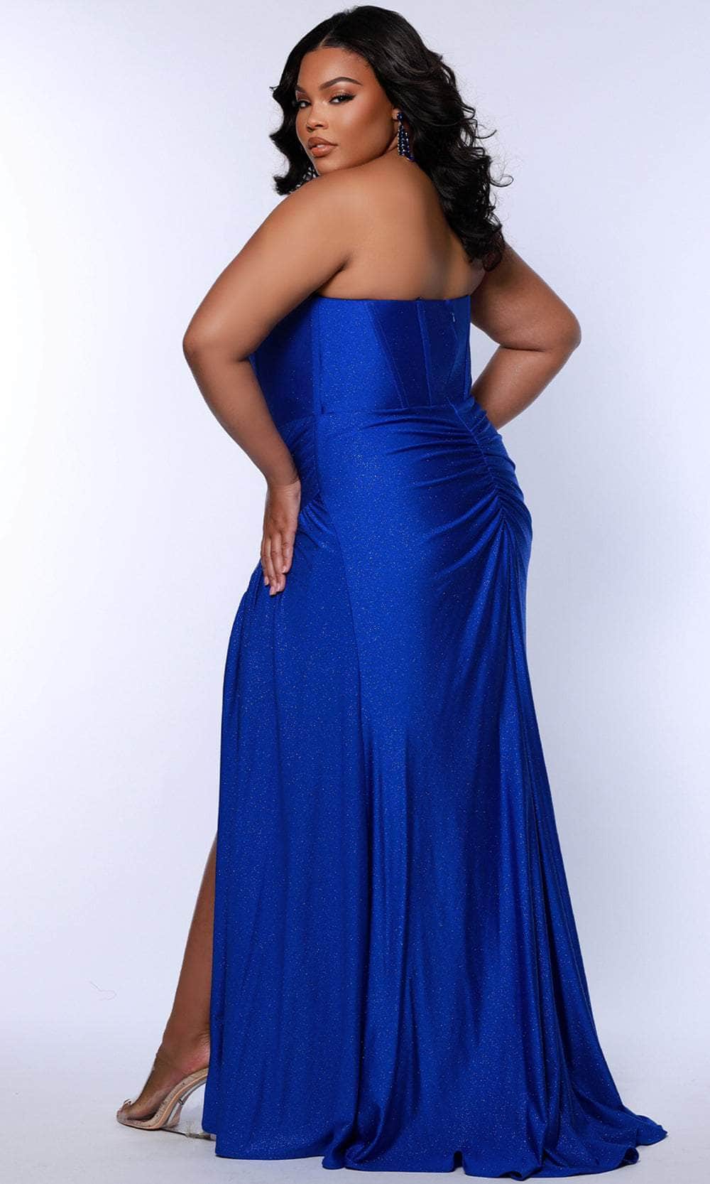 Discover the Sydney's Closet SC7412 stretch jersey gown. The V-neckline and ruched bodice contribute to a visually appealing silhouette, whereas the side vent introduces an element of drama. The comfortable stretch fabric assures easy movement. Embrace sophistication with the Sydney's Closet SC7412. Model is wearing the Emerald, Onkyx, and Sapphire color dresses.
