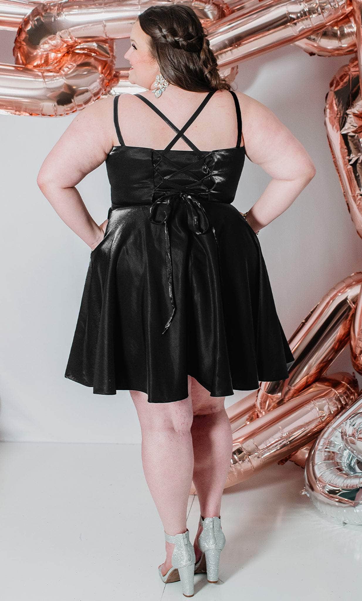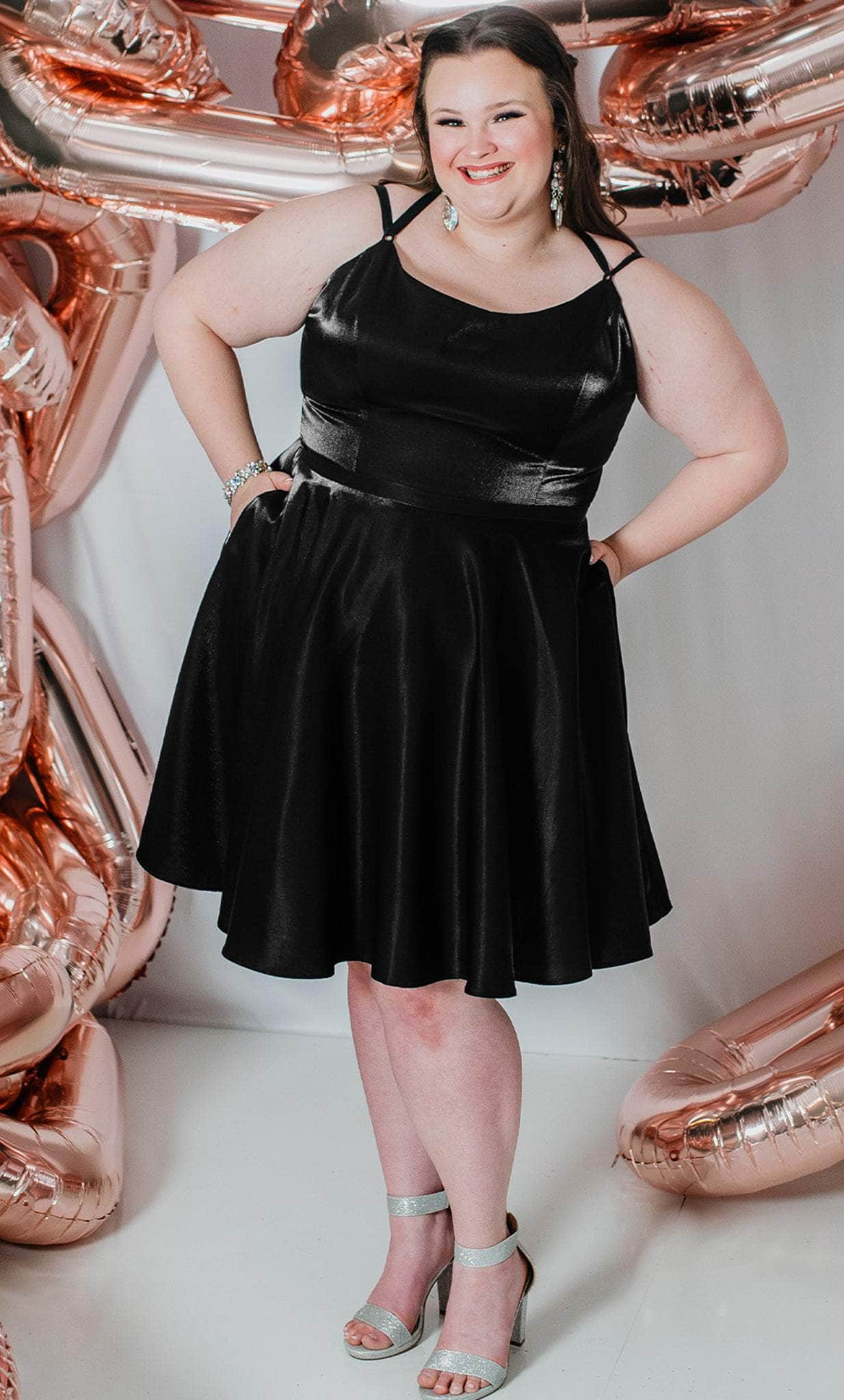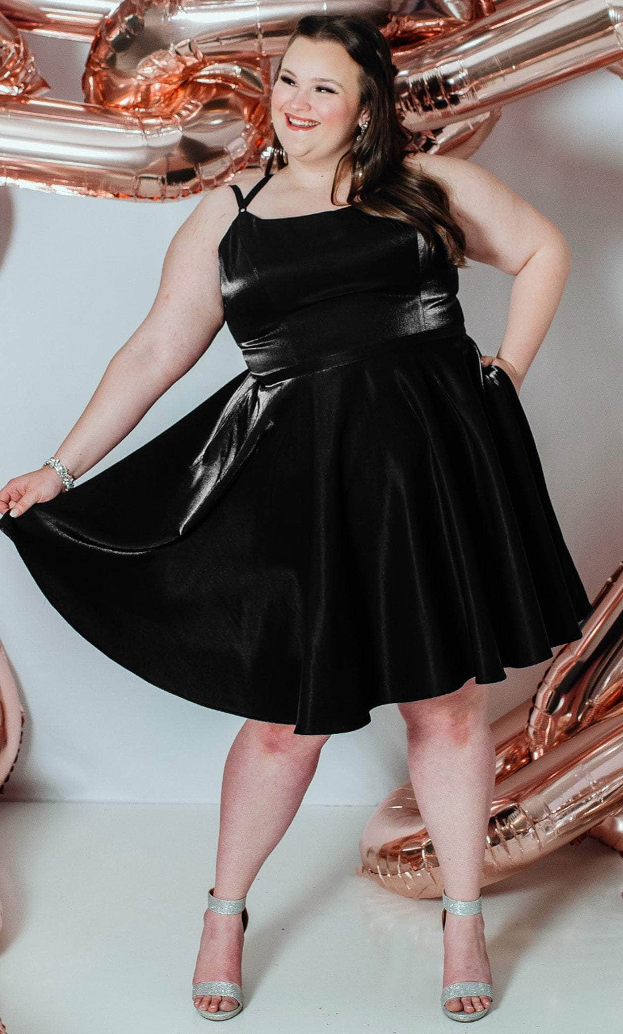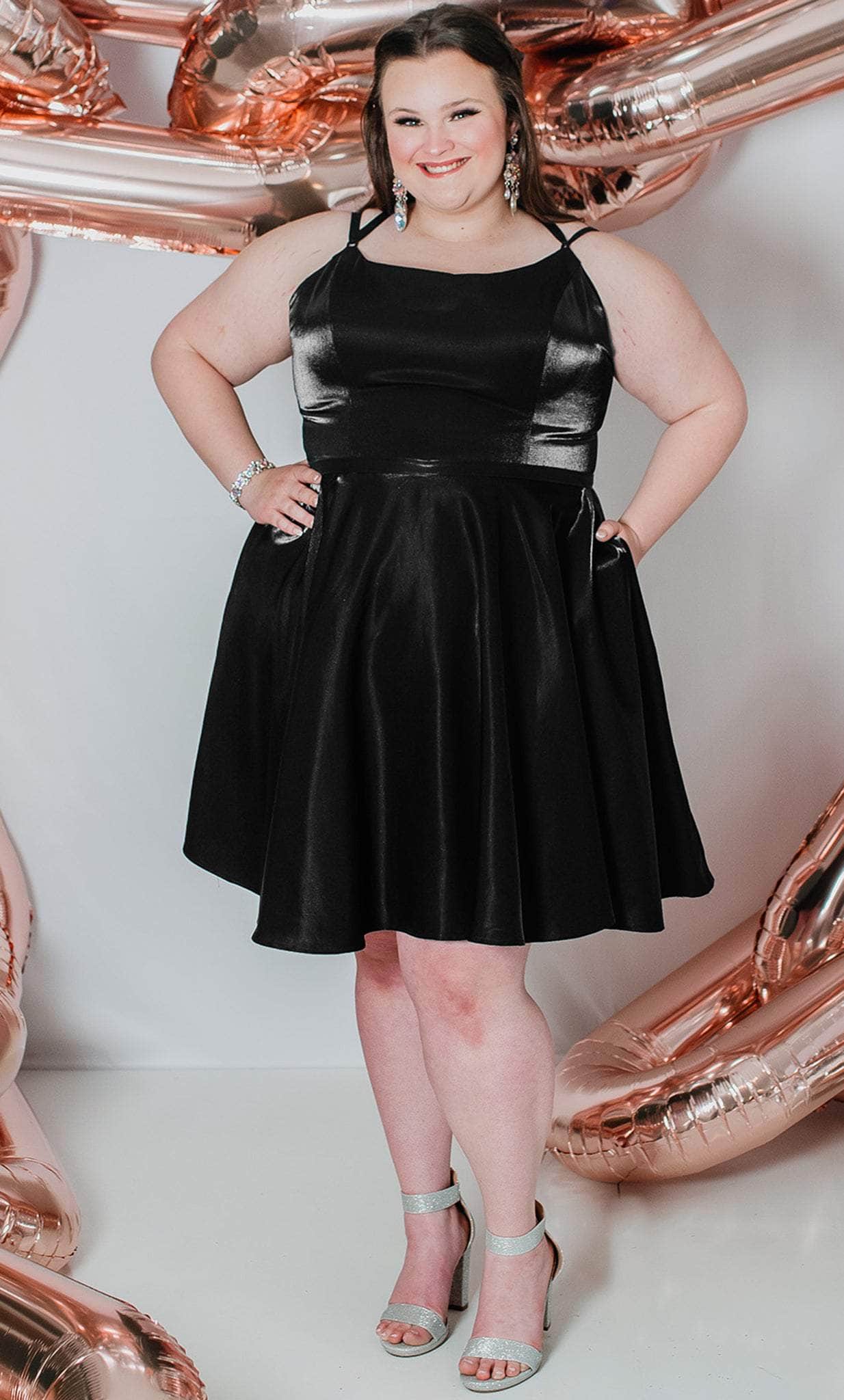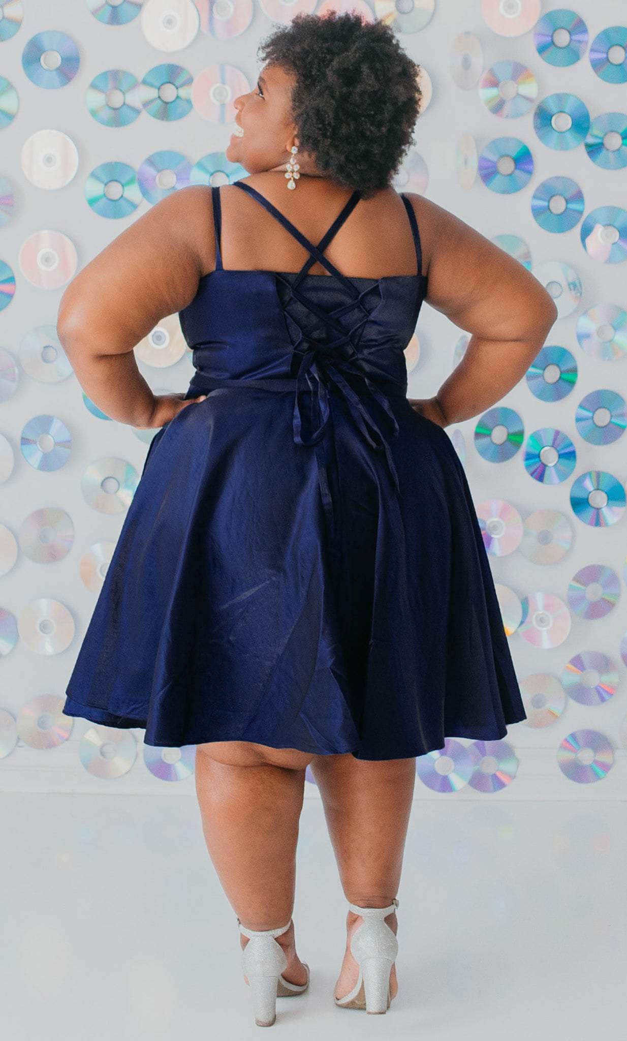 Look lovely in this timeless Sydney's Closet SC8116 creation. The sleeveless dress displays a scoop neckline stringed with dual thin straps. The midrise back will make heads turn as it features a strappy lace-up tie design for a customized fit. A side pocket and an A-line skirt that falls in a short length hem finish this outfit. This Sydney's Closet SC8116 style is a sure standout on your next evening social event. Models are wearing the Berry, Black and Navy colors.