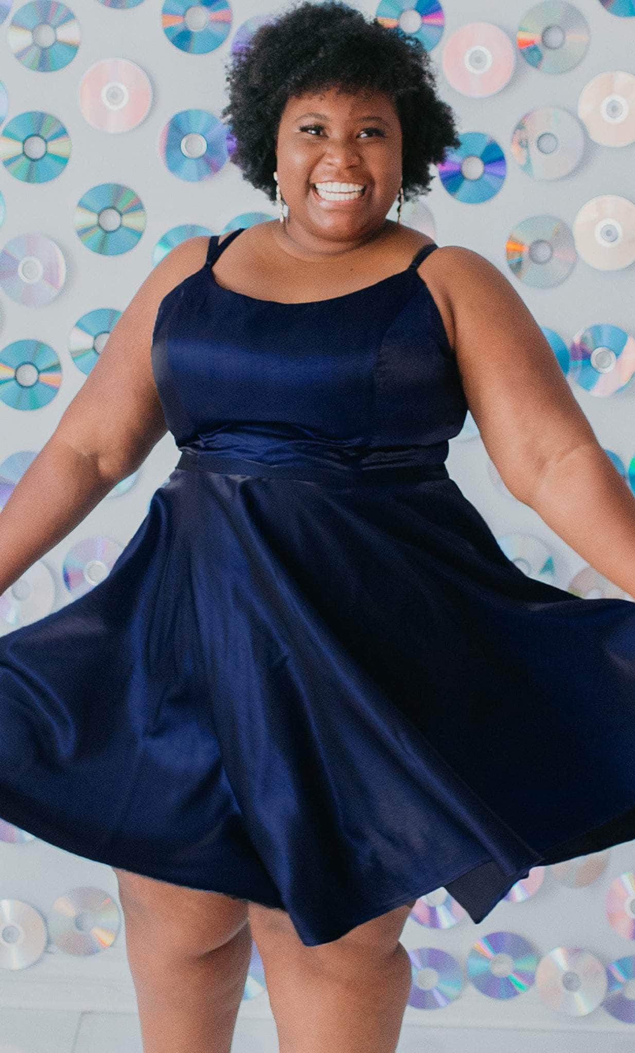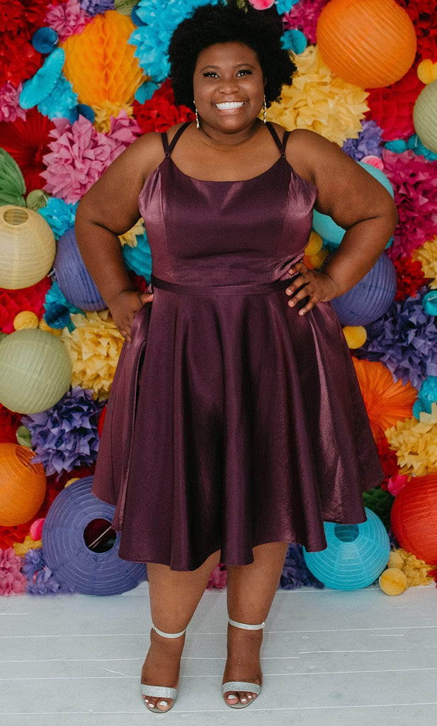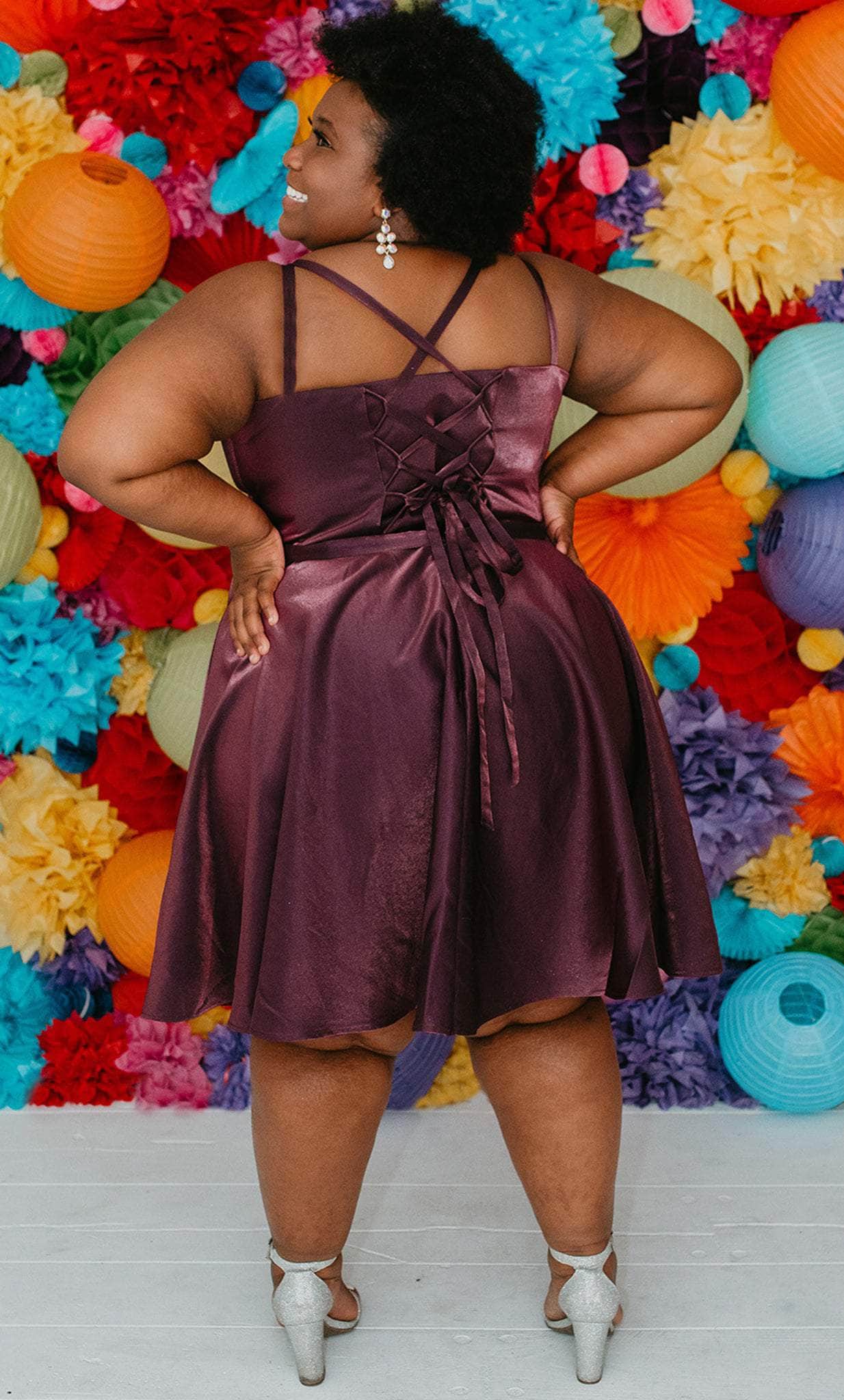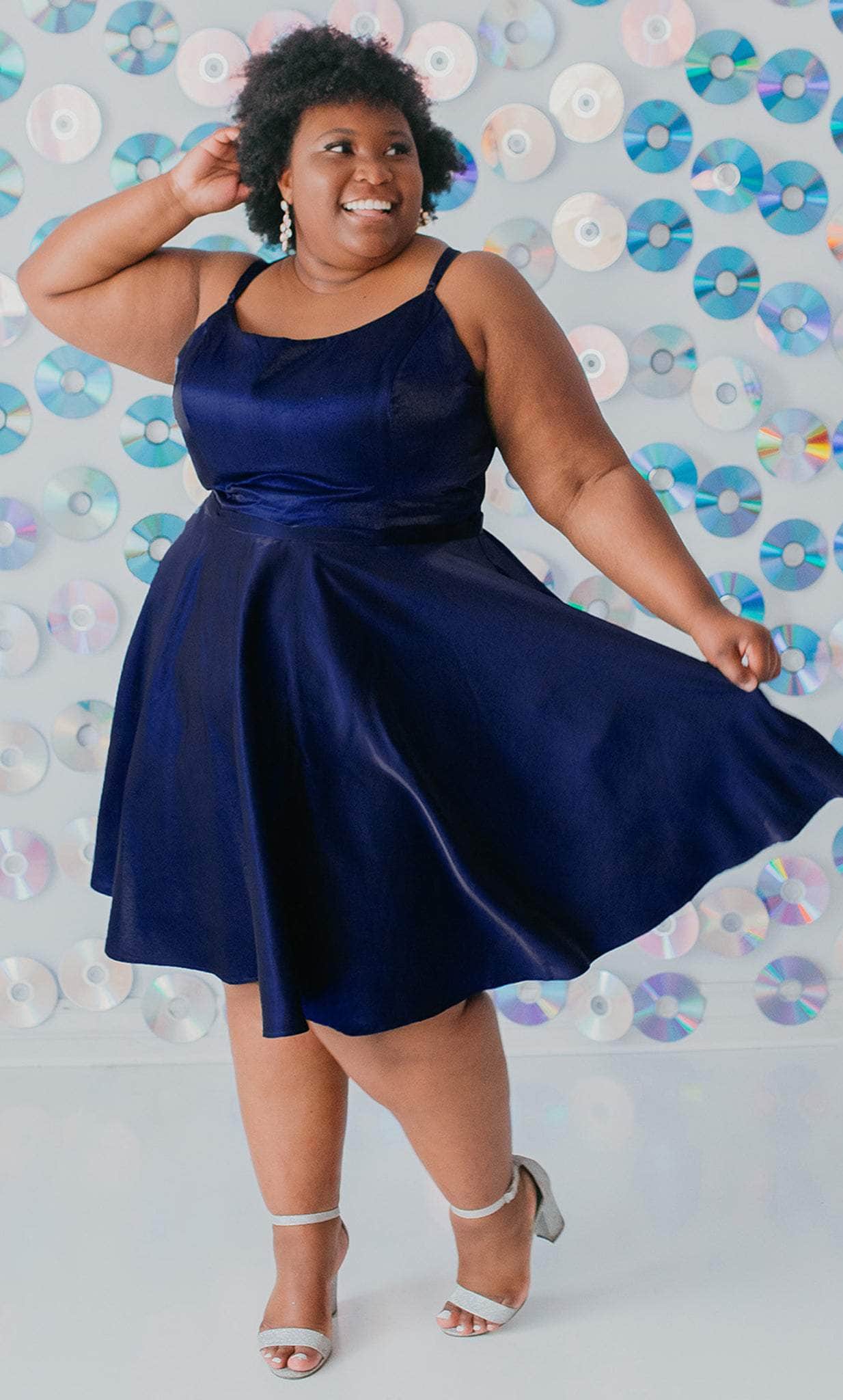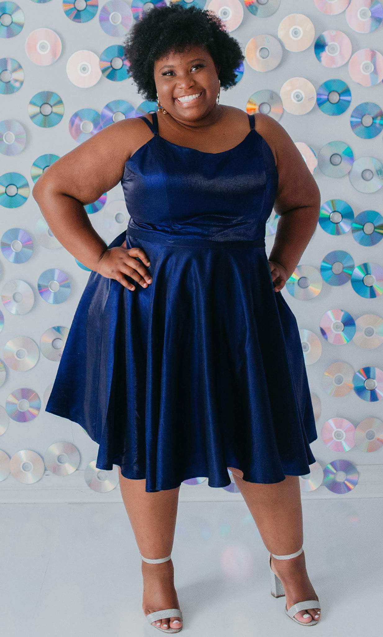 Look lovely in this timeless Sydney's Closet SC8116 creation. The sleeveless dress displays a scoop neckline stringed with dual thin straps. The midrise back will make heads turn as it features a strappy lace-up tie design for a customized fit. A side pocket and an A-line skirt that falls in a short length hem finish this outfit. This Sydney's Closet SC8116 style is a sure standout on your next evening social event. Models are wearing the Berry, Black and Navy colors.