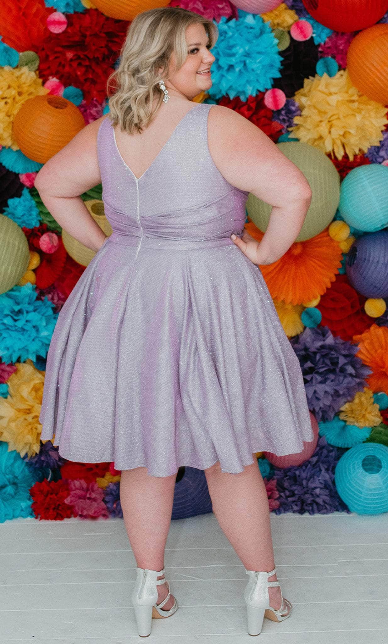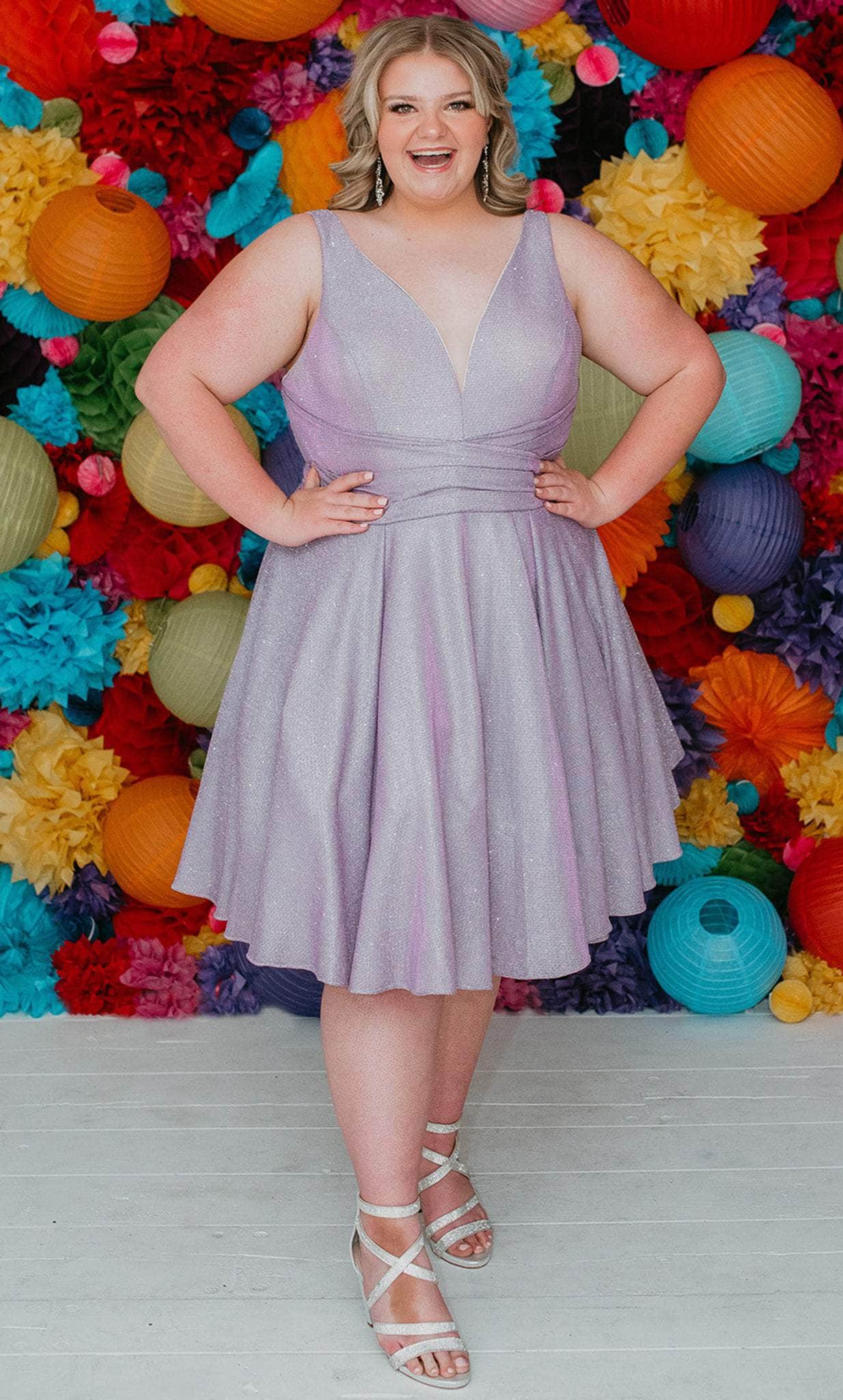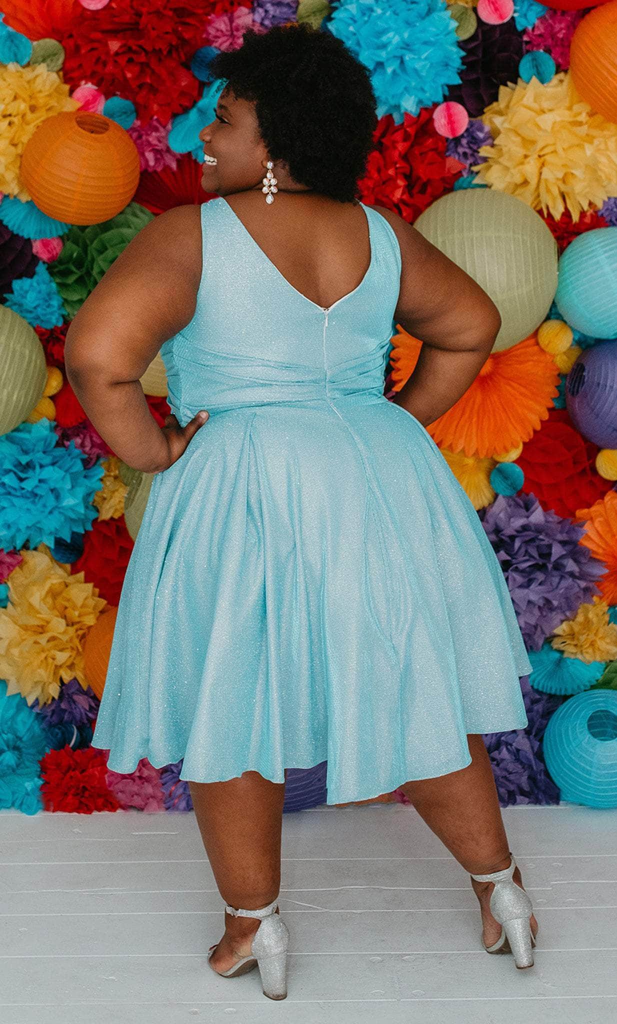 Be sexy and classy with this gorgeous dress from Sydney's Closet SC8117. Amaze everyone when you wear this sparkling cocktail dress. Features a sleeveless bodice crowned with a V-neckline and cinched with a ruching waistband. The V-shape back is secured with a center zipper closure and the skirt that flows gracefully in an A-line silhouette hugs your natural waistline while you look fabulous to surprise and delight everyone at the event. This glamorous Sydney's Closet SC8117 masterpiece creates a fun and exciting look. Models are wearing Capri Blue and Orchid Purple colors.
