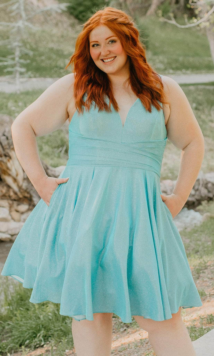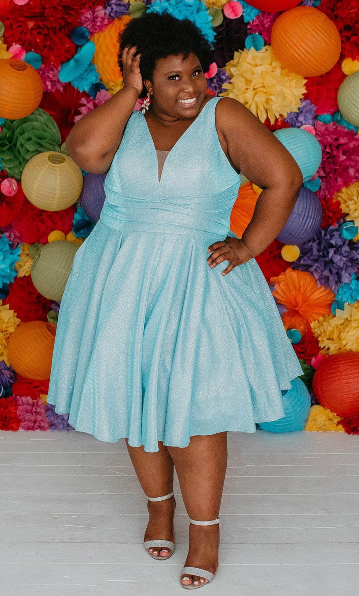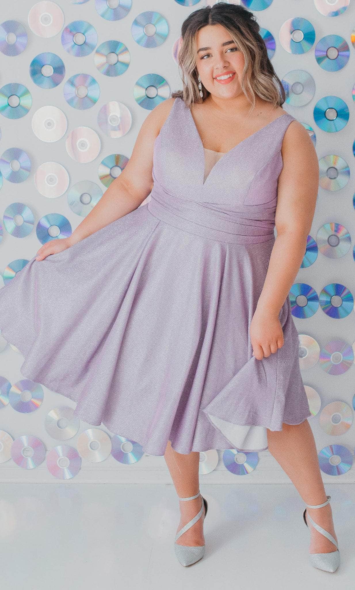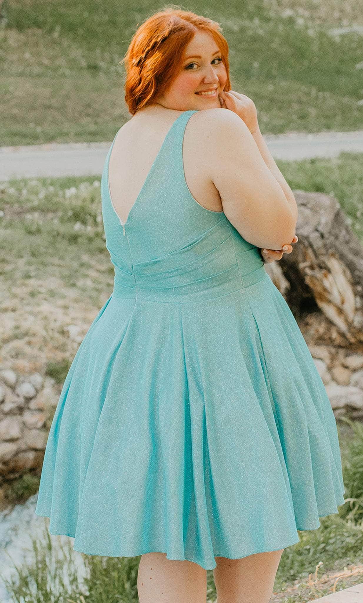 Be sexy and classy with this gorgeous dress from Sydney's Closet SC8117. Amaze everyone when you wear this sparkling cocktail dress. Features a sleeveless bodice crowned with a V-neckline and cinched with a ruching waistband. The V-shape back is secured with a center zipper closure and the skirt that flows gracefully in an A-line silhouette hugs your natural waistline while you look fabulous to surprise and delight everyone at the event. This glamorous Sydney's Closet SC8117 masterpiece creates a fun and exciting look. Models are wearing Capri Blue and Orchid Purple colors.