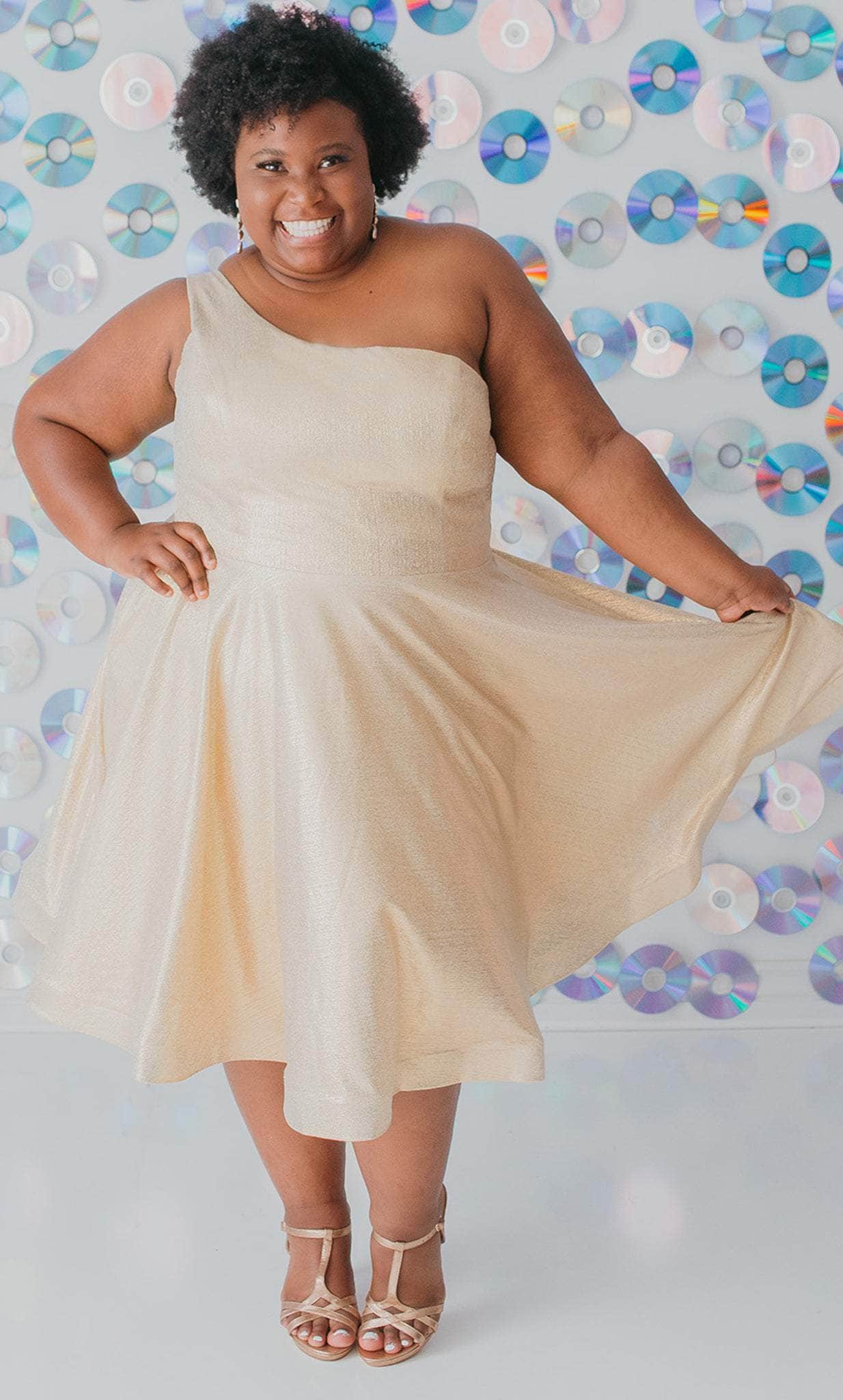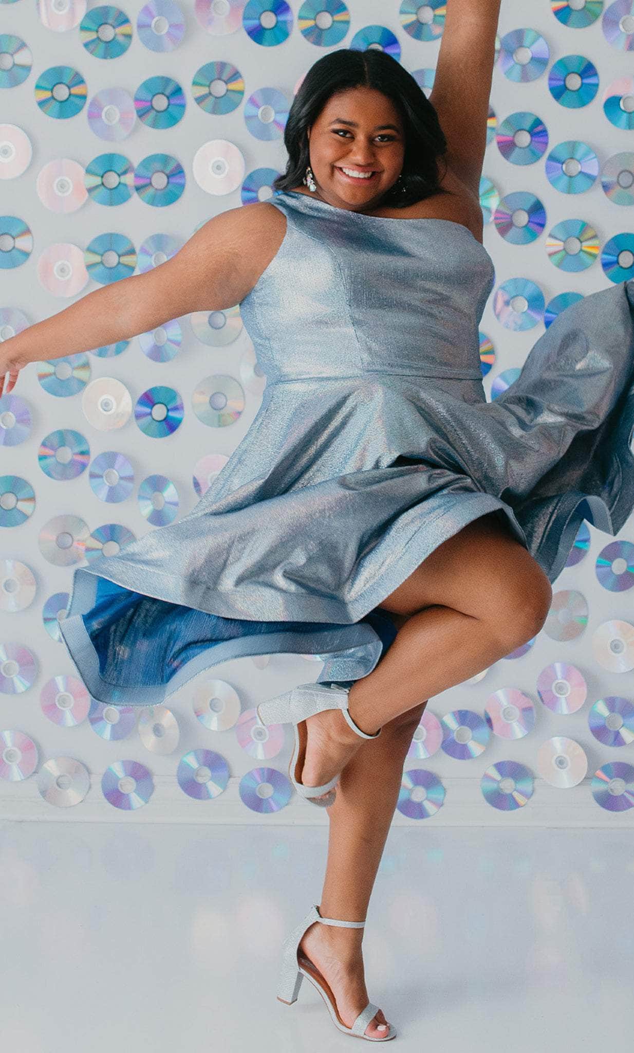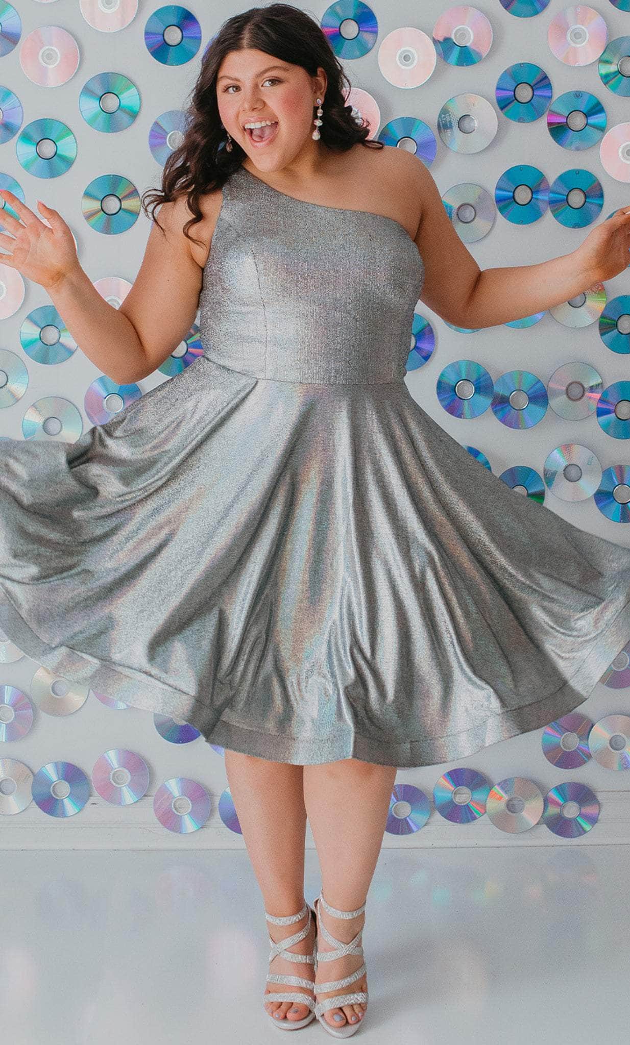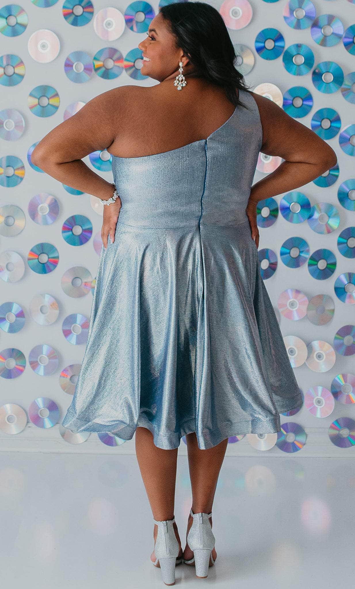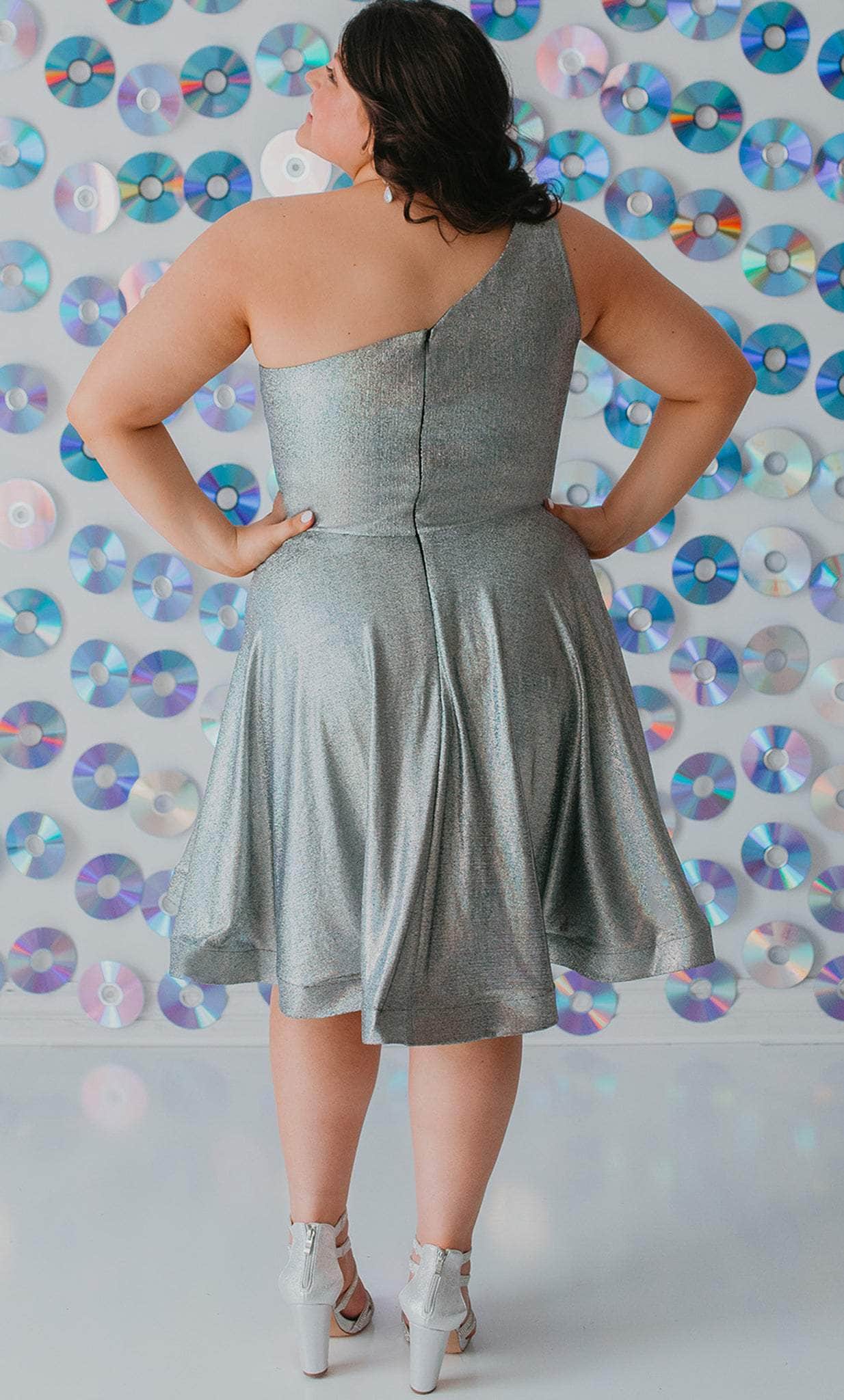 Look your absolute best and create a night that you will never forget in this Sydney's Closet SC8119. Under the party lights, the sparkly metallic fabric will shimmer like crystals. This knee-length dress includes a one-sleeve fitted bodice that is crowned with an asymmetrical neckline and paired with a slanted back that is secured with a center zipper closure. The skirt parades in an A-line silhouette. Be a ray of light in this glorious Sydney's Closet SC8119 masterpiece. Models are wearing Metallic Black, Metallic Blue, and Metallic Gold colors.