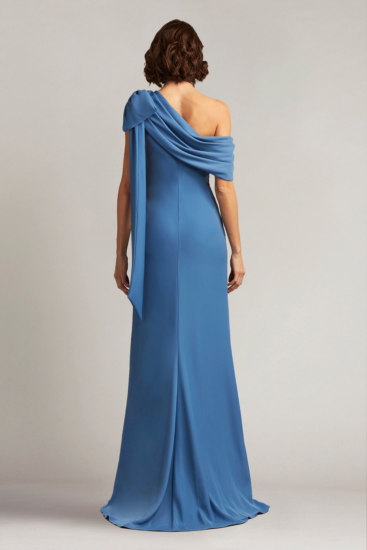 Capture that striking presence in this lovely Tadashi Shoji ALG18371L masterpiece. Crafted from exquisite crepe fabric, this gown flaunts an off-shoulder asymmetric neckline and mid-open back. It includes a single short sleeve and a draped bow accent on the other shoulder. Enhancing your curves to perfection, the skirt crafts a sheath silhouette that glides to the floor and sweeping train. You will truly feel special in this Tadashi Shoji ALG18371L gown. Models are wearing Black, Cactus, Cadet Blue, Eclipse, Ivory, Red Rose, and Violet colors.